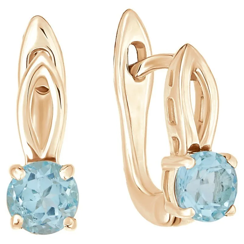 Серебряные серьги с натуральным голубым топазом - коллекция Мона. Серебряные серьги 925 пробы с покрытием розовое золото. Цвет покрытия соответствует швейцарскому цветовому стандарту NIHS -4N и цвету розового золота 585 в России. На последней фотографии мы разместили сравнительную фотографию 3 цвета золотого покрытия. Помимо предания золотого цвета Вашему изделию, тонкий слой золота защищает от окисления. Для более стойкого эффекта золочения и долговечности покрытия мы дополнительно наносим подслой палладия (Pd). Средний вес изделия с камнем составляет 2.59 гр. Месторождение(я): Голубой топаз (Ильменские горы, Россия). Голубой топаз (Натуральный) круг 5 мм., средний вес: 0.57 карат. Все изделия собственного производства. Гарантия 12 месяцев.Арт. 7721. Топаз – камень, который отличаются особенным блеском и многообразной гаммой. Сверхтвёрдый и сверхпрочный, он наделен и лечебными, и магическими свойствами. Считалось, что амулет из топаза способен благоприятно повлиять на зачатие, потому часто дарился бездетным парам. Это камень дружбы и благоразумия, радости, оптимизма и надежды.