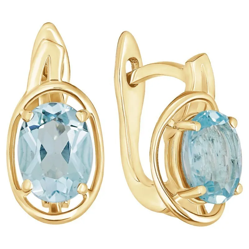 Серебряные серьги с натуральным голубым топазом - коллекция Фрейя. Серебряные серьги 925 пробы с покрытием желтое золото. Цвет покрытия соответствует швейцарскому цветовому стандарту NIHS -FF24ct и цвету чистого золото 999.99. На последней фотографии мы разместили сравнительную фотографию 3 цвета золотого покрытия. Помимо предания золотого цвета Вашему изделию, тонкий слой золота защищает от окисления. Для более стойкого эффекта золочения и долговечности покрытия мы дополнительно наносим подслой палладия (Pd). Средний вес изделия с камнем составляет 3.34 гр. Месторождение(я): Голубой топаз (Ильменские горы, Россия). Голубой топаз (Натуральный) овал 6*8 мм., средний вес: 1.40 карат. Все изделия собственного производства. Гарантия 12 месяцев.Арт. 7755. Топаз – камень, который отличаются особенным блеском и многообразной гаммой. Сверхтвёрдый и сверхпрочный, он наделен и лечебными, и магическими свойствами. Считалось, что амулет из топаза способен благоприятно повлиять на зачатие, потому часто дарился бездетным парам. Это камень дружбы и благоразумия, радости, оптимизма и надежды.