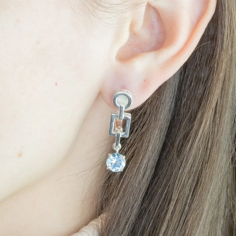 Серебряные серьги с натуральным голубым топазом - коллекция Классик / Без покрытия