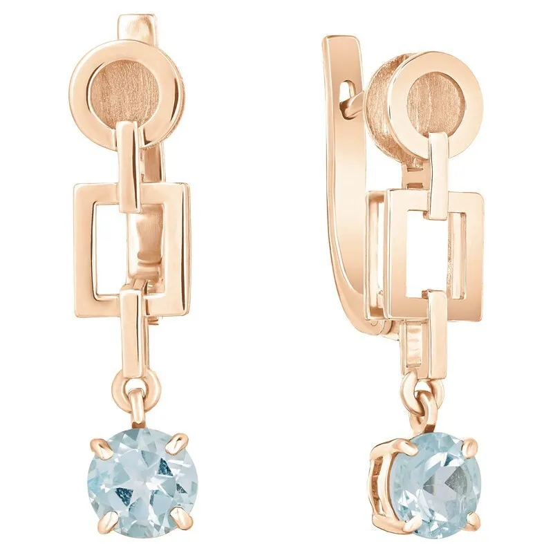 Серебряные серьги с натуральным голубым топазом - коллекция Классик / покрытие Красное Золото