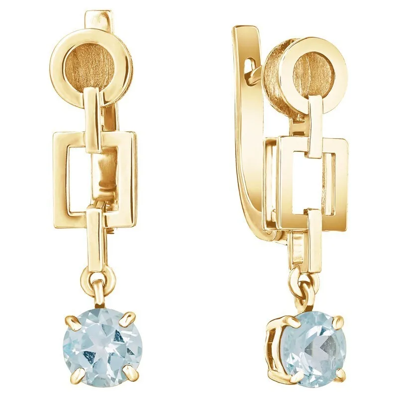 Серебряные серьги с натуральным голубым топазом - коллекция Классик / покрытие Желтое Золото