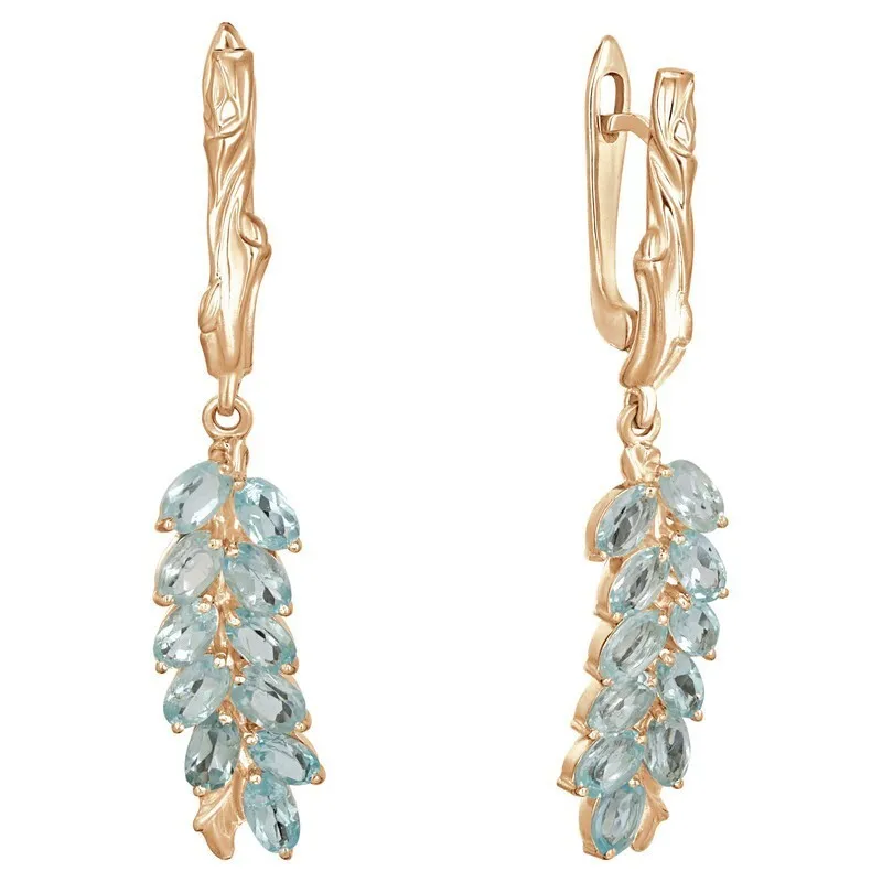Серебряные серьги с натуральным топазом - коллекция Флора. Серебряные серьги 925 пробы с покрытием розовое золото. Цвет покрытия соответствует швейцарскому цветовому стандарту NIHS -4N и цвету розового золота 585 в России. На последней фотографии мы разместили сравнительную фотографию 3 цвета золотого покрытия. Помимо предания золотого цвета Вашему изделию, тонкий слой золота защищает от окисления. Для более стойкого эффекта золочения и долговечности покрытия мы дополнительно наносим подслой палладия (Pd). Средний вес изделия с камнями 7.82 гр. Месторождение(я): Топаз (Ильменские горы, Россия). Топаз (Натуральный) овал 3*5 мм., средний вес: 0.31 карат. Размер лицевой части: 9*48 мм. Все изделия собственного производства. Гарантия 12 месяцев.Арт. 7854