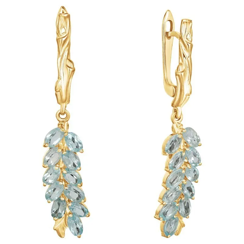 Серебряные серьги с натуральным топазом - коллекция Флора. Серебряные серьги 925 пробы с покрытием желтое золото. Цвет покрытия соответствует швейцарскому цветовому стандарту NIHS -FF24ct и цвету чистого золото 999.99. На последней фотографии мы разместили сравнительную фотографию 3 цвета золотого покрытия. Помимо предания золотого цвета Вашему изделию, тонкий слой золота защищает от окисления. Для более стойкого эффекта золочения и долговечности покрытия мы дополнительно наносим подслой палладия (Pd). Средний вес изделия с камнями 7.82 гр. Месторождение(я): Топаз (Ильменские горы, Россия). Топаз (Натуральный) овал 3*5 мм., средний вес: 0.31 карат. Размер лицевой части: 9*48 мм. Все изделия собственного производства. Гарантия 12 месяцев.Арт. 7854