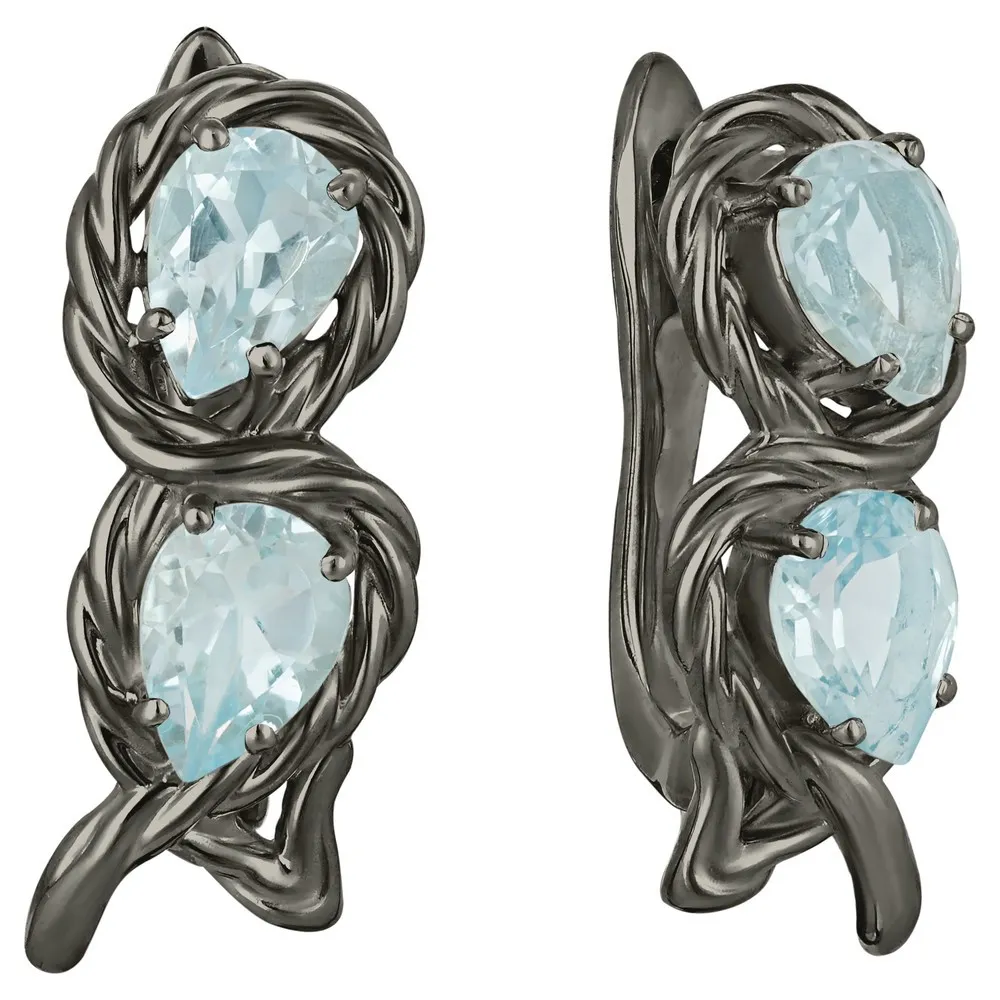 Серебряные серьги с натуральным топазом - коллекция Ривьера, покрытие Черный Родий.