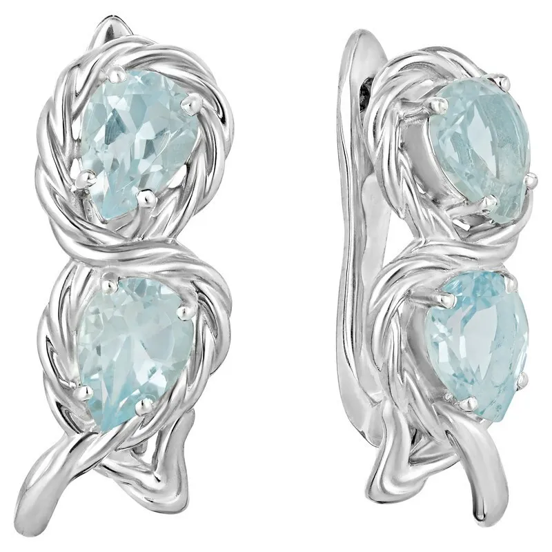 Серебряные серьги с натуральным голубым топазом - коллекция Ривьера / Без покрытия