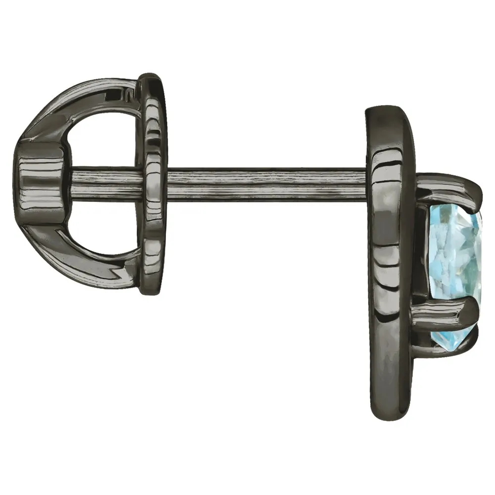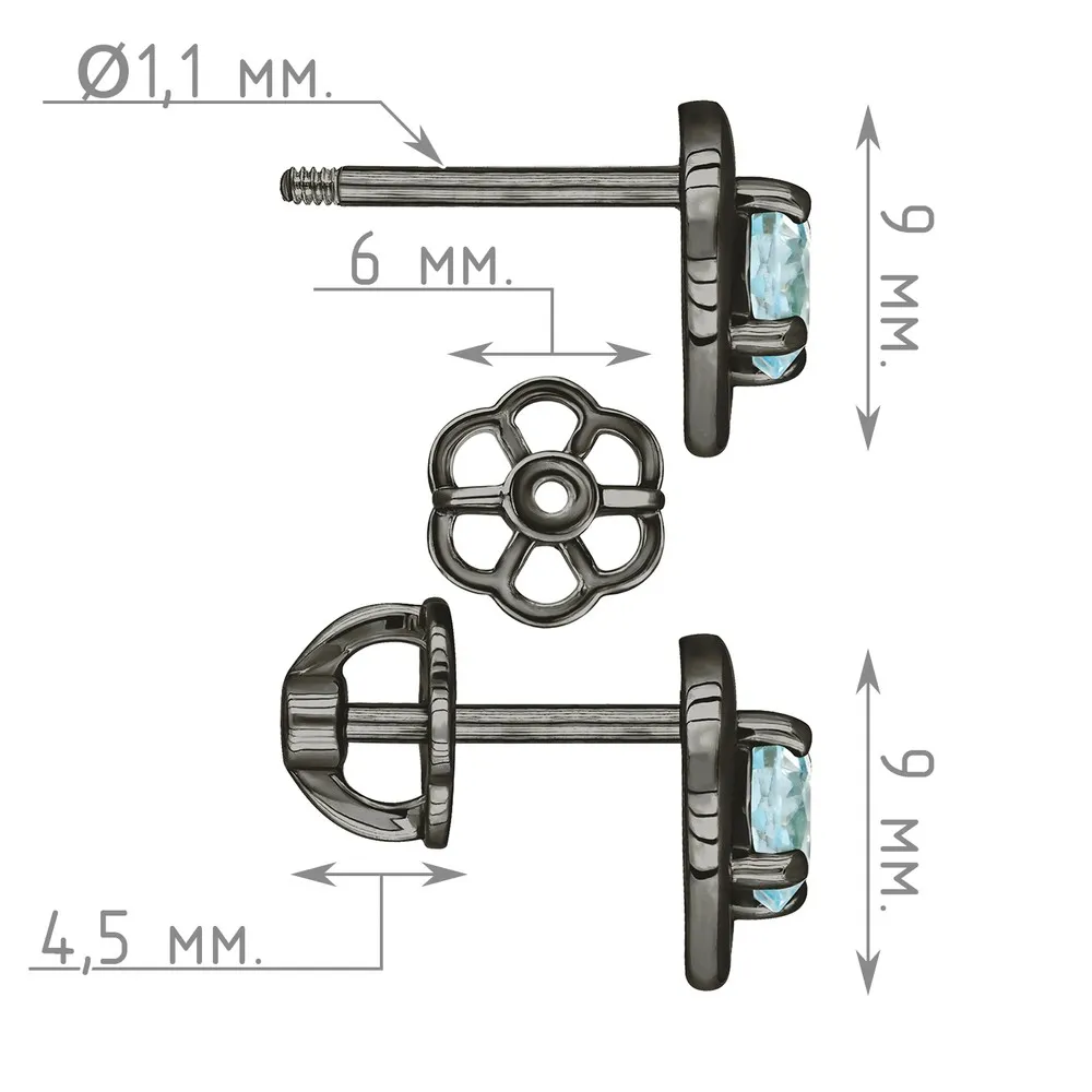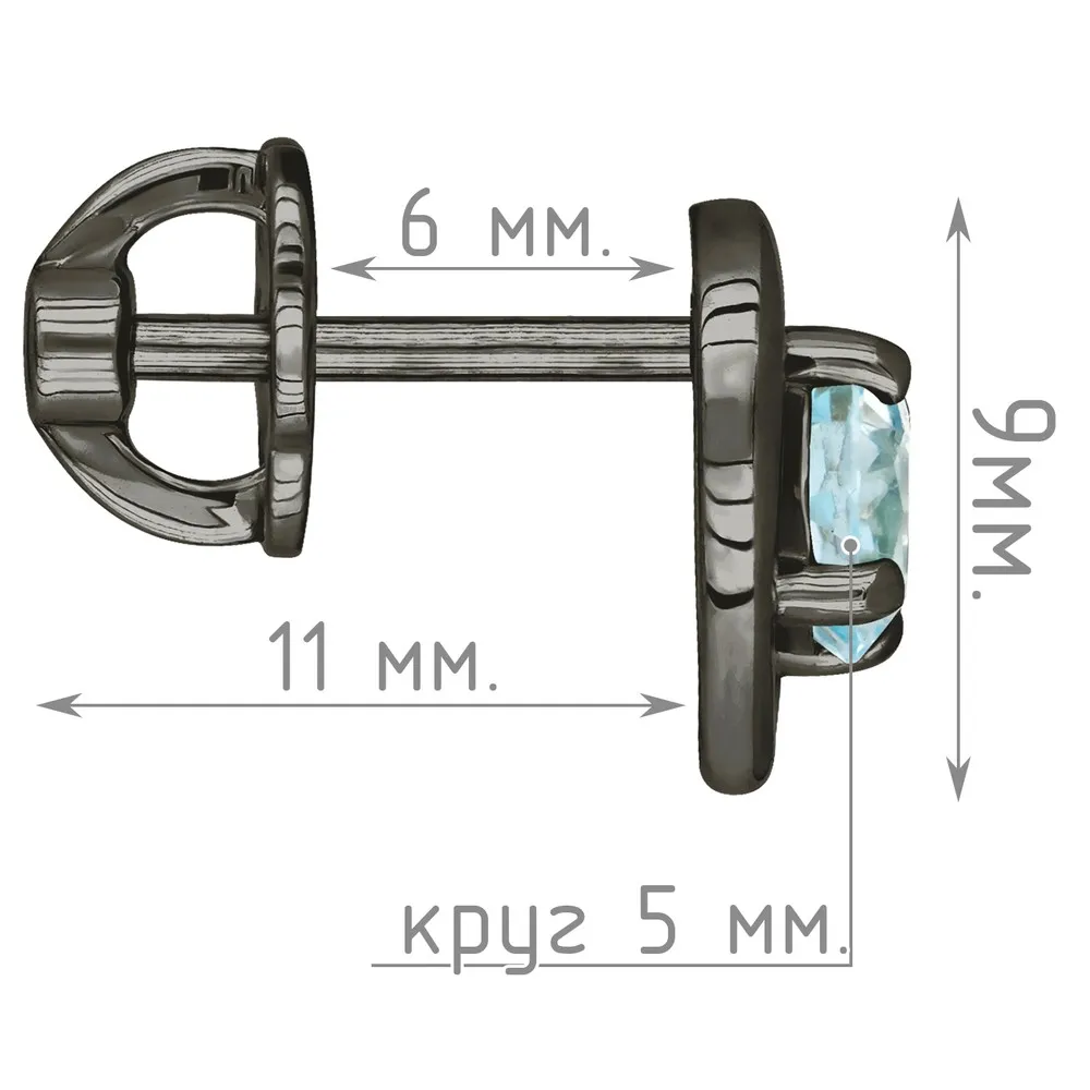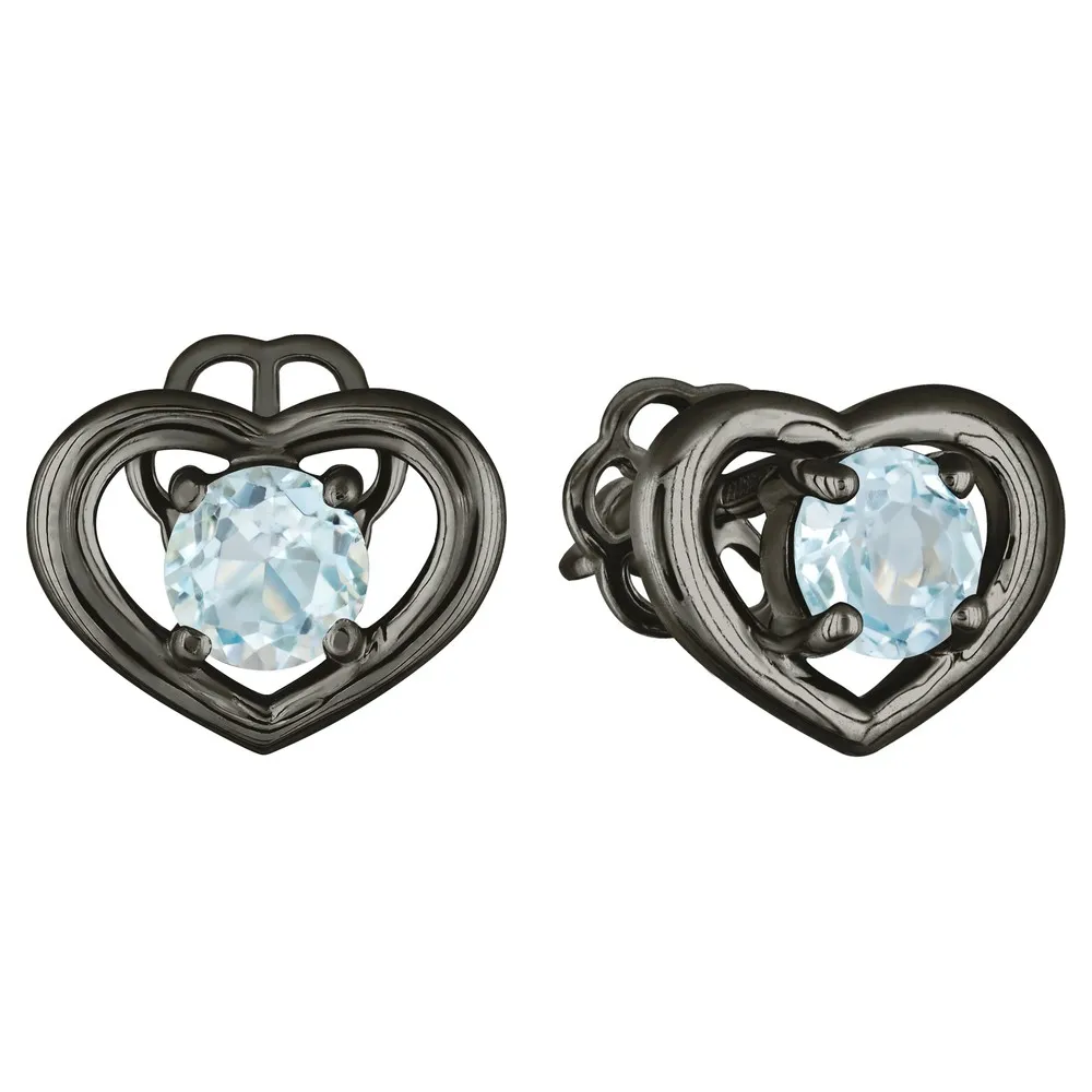 Серебряные серьги гвоздики (пусеты) с натуральным голубым топазом (Sky) - Сердце / покрытие Черный Родий.