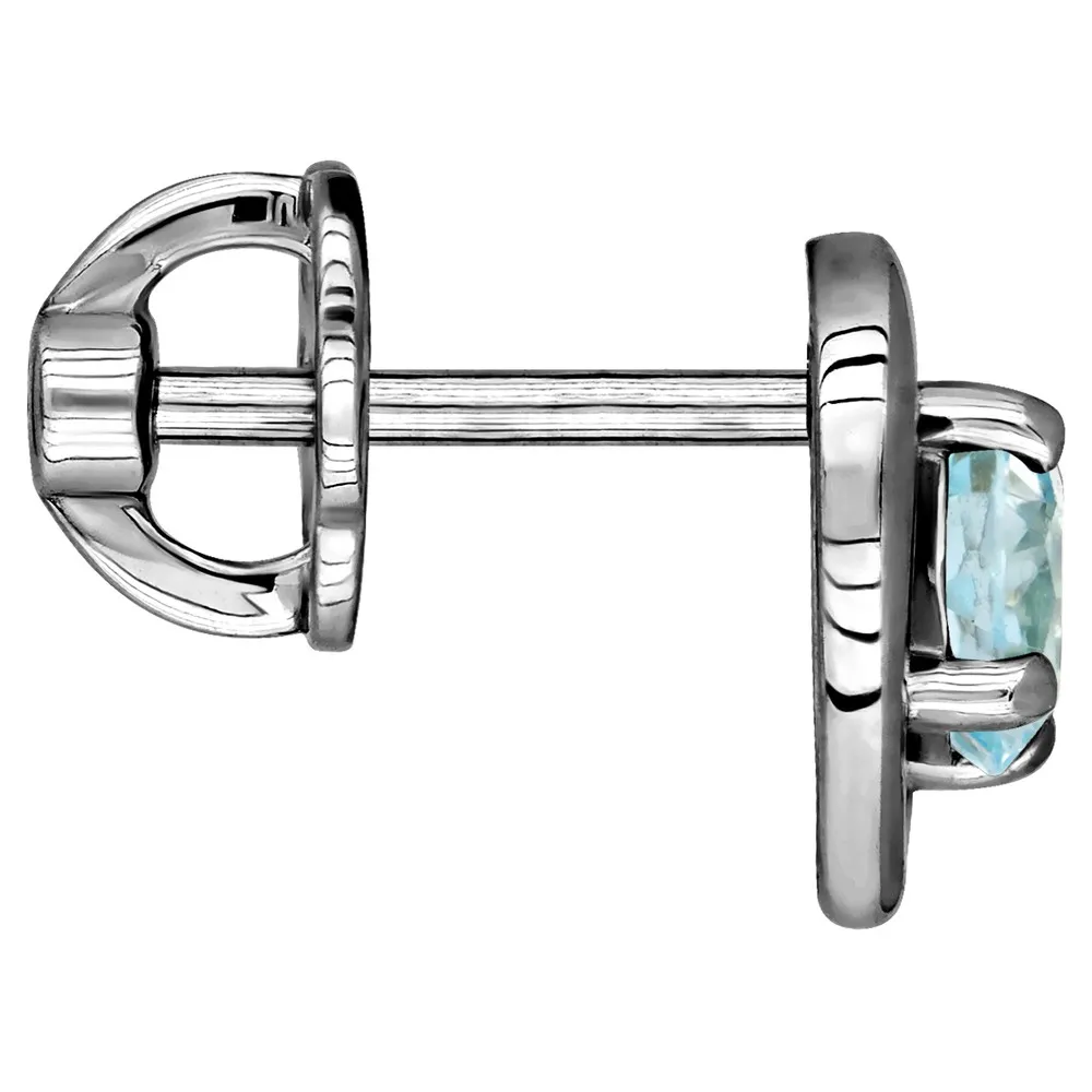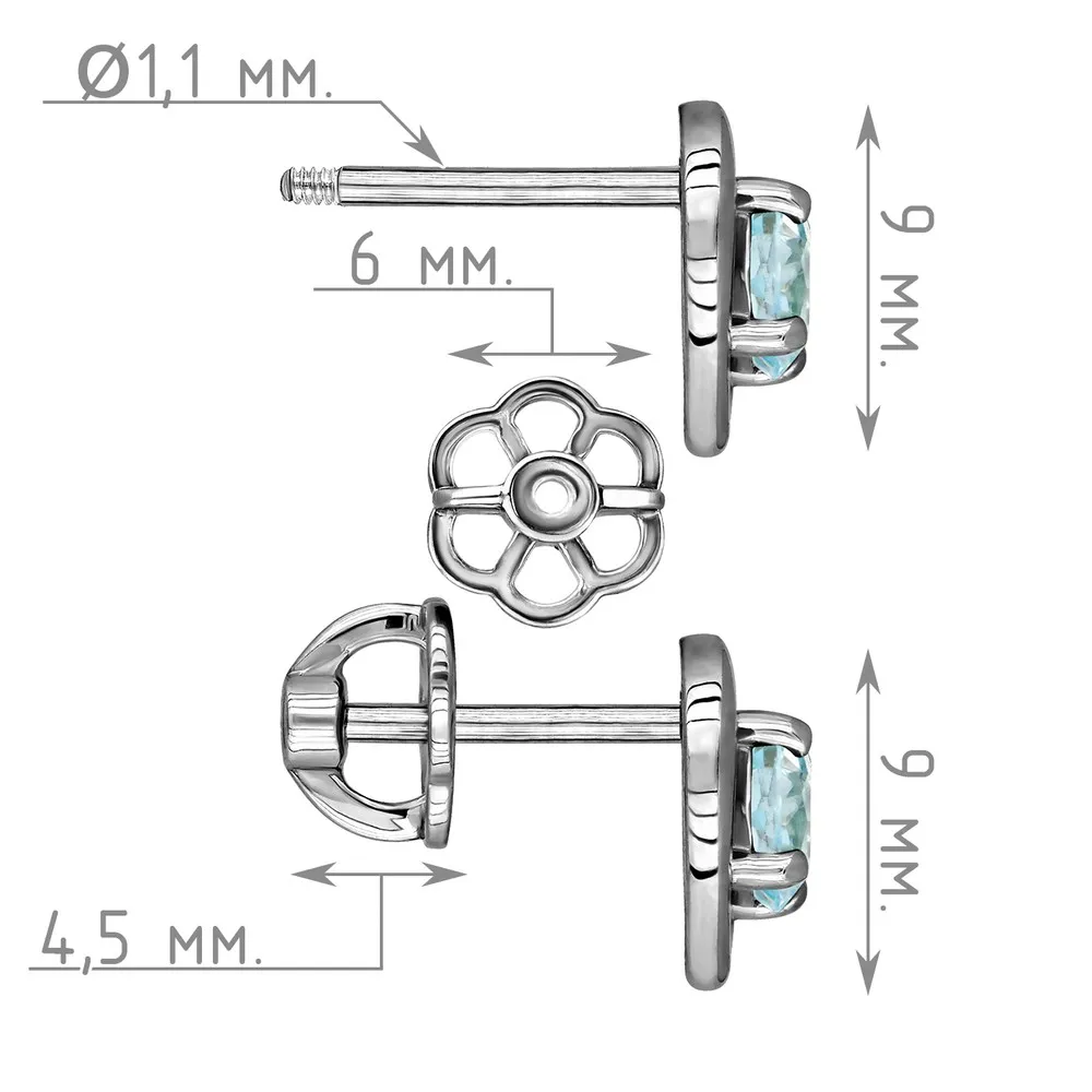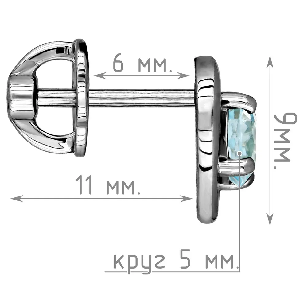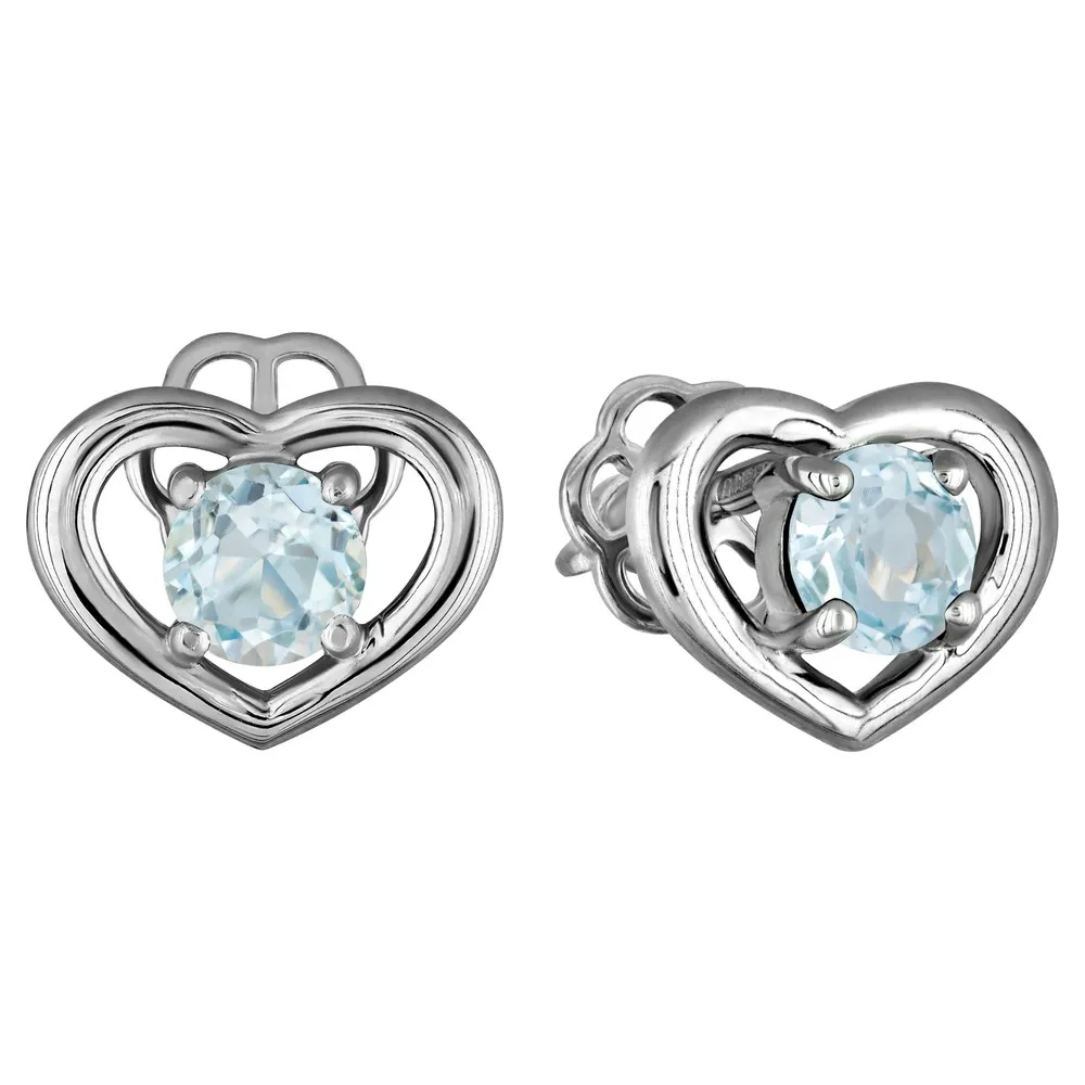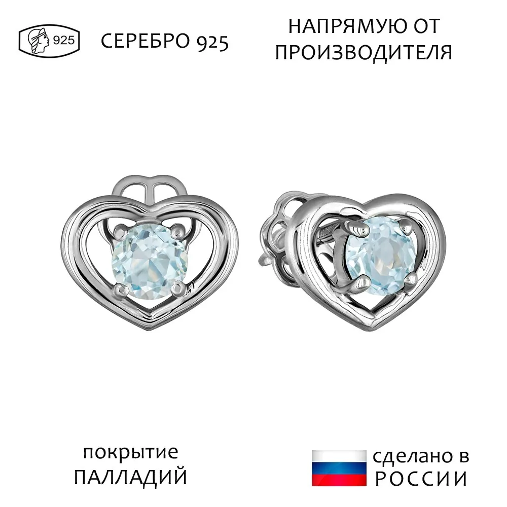 Серебряные серьги гвоздики (пусеты) с натуральным голубым топазом (Sky) - Сердце / покрытие Палладий.