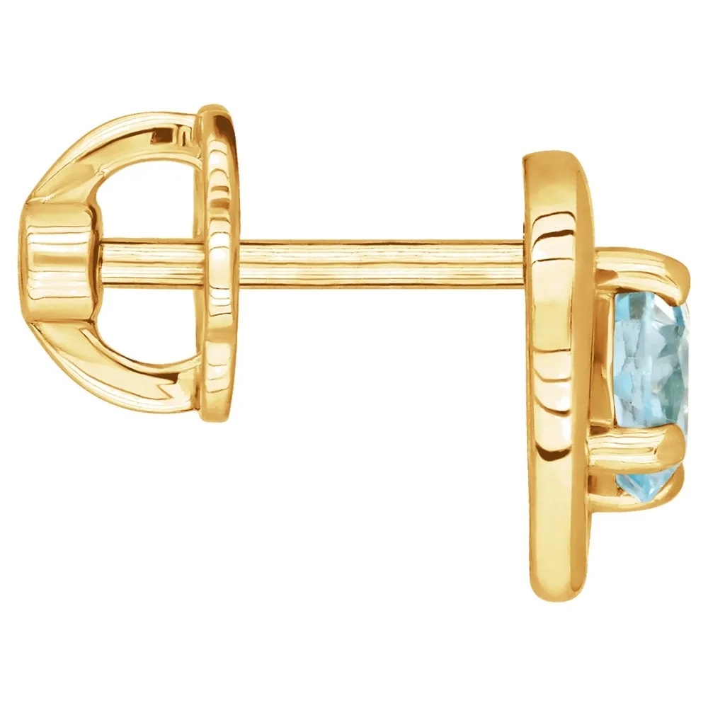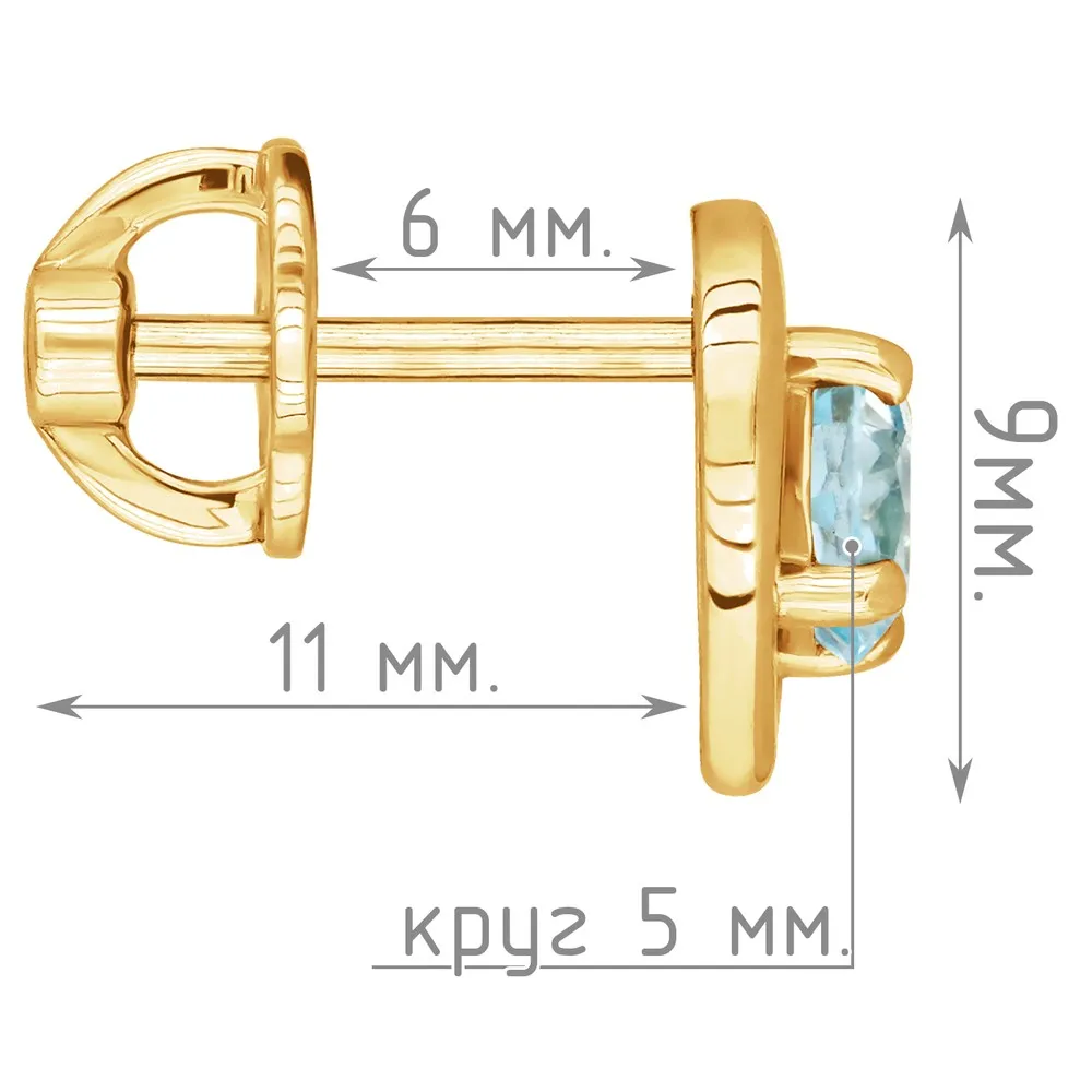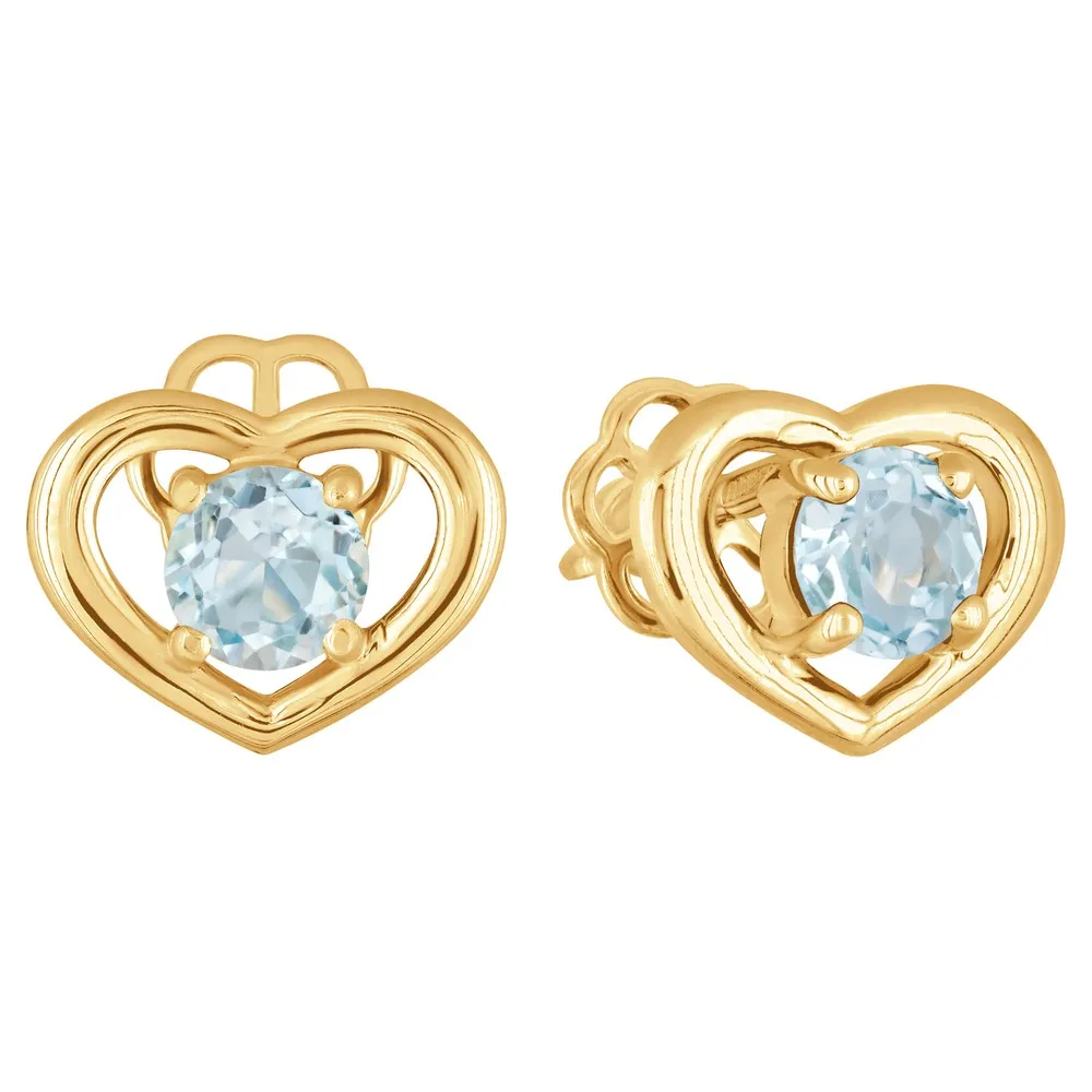 Серебряные серьги гвоздики (пусеты) с натуральным голубым топазом (Sky) - Сердце / покрытие Желтое Золото.