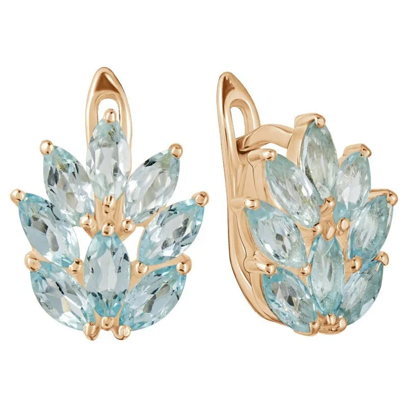 Серебряные серьги с натуральным голубым топазом - коллекция Искра / покрытие Розовое Золото