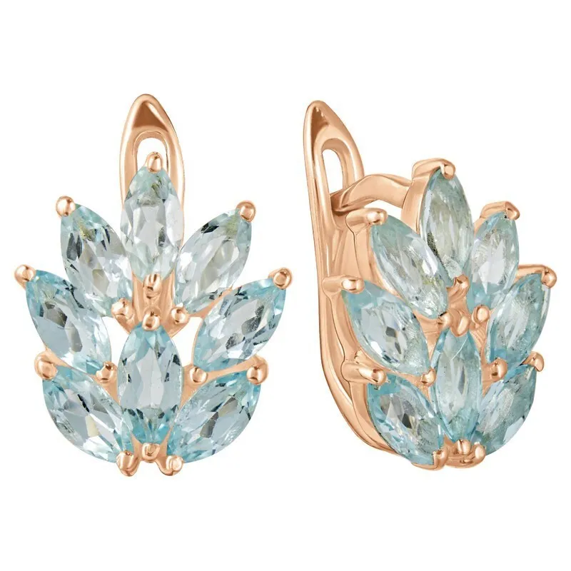 Серебряные серьги с натуральным голубым топазом - коллекция Искра / покрытие Красное Золото