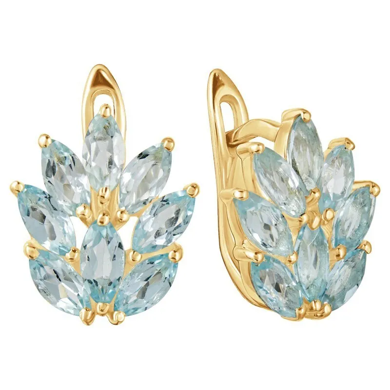 Серебряные серьги с натуральным голубым топазом - коллекция Искра / покрытие Желтое Золото