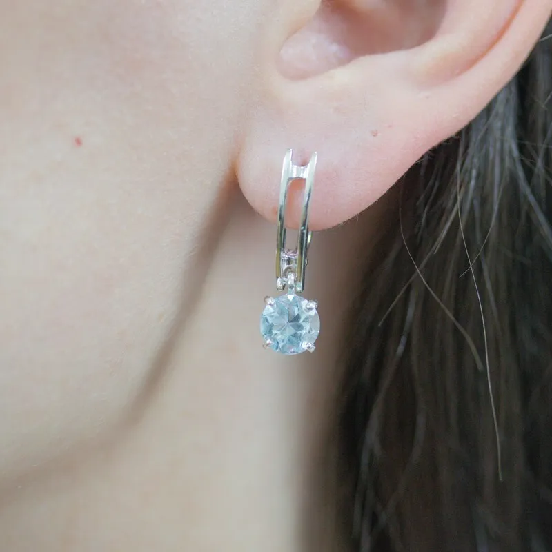 Серебряные серьги с натуральным голубым топазом - коллекция Классик (мини) / покрытие Чистое Серебро
