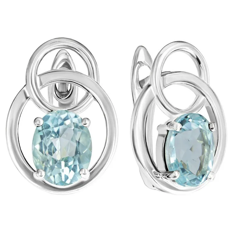 Серебряные серьги с натуральным голубым топазом - коллекция Юнона. Средний вес изделия с камнями 4.15 гр. Месторождение: Топаз (Ильменские горы, Россия). Топаз (Натуральный) овал 6*8 мм., средний вес: 1.62 карат. Все изделия собственного производства. Гарантия 12 месяцев.Арт. 8402. Топаз – камень, который отличаются особенным блеском и многообразной гаммой. Сверхтвёрдый и сверхпрочный, он наделен и лечебными, и магическими свойствами. Считалось, что амулет из топаза способен благоприятно повлиять на зачатие, потому часто дарился бездетным парам. Это камень дружбы и благоразумия, радости, оптимизма и надежды.