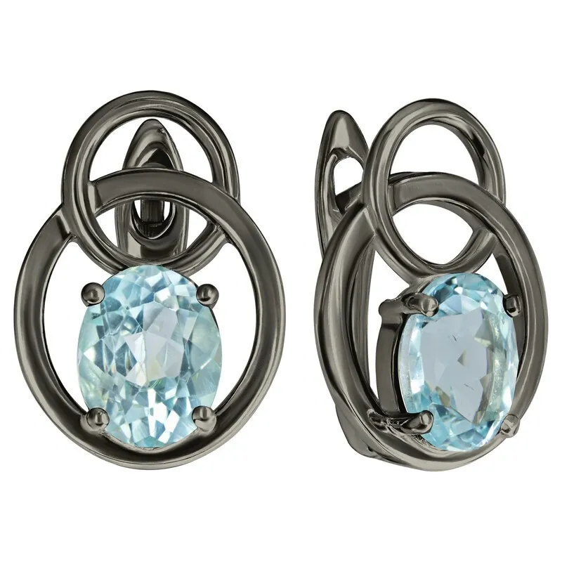 Серебряные серьги с натуральным голубым топазом - коллекция Юнона, покрытие Черный Родий.