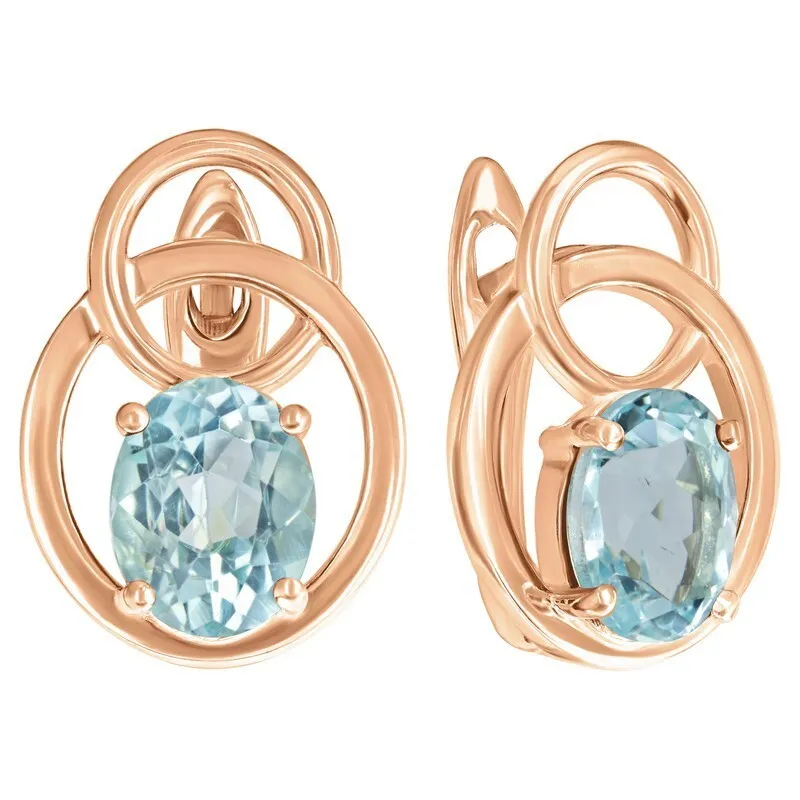 Серебряные серьги с натуральным голубым топазом - коллекция Юнона. Серебряные серьги 925 пробы с покрытием красное золото. Цвет покрытия соответствует швейцарскому цветовому стандарту NIHS -5N и цвету красного золота 585 в России. На последней фотографии мы разместили сравнительную фотографию 3 цвета золотого покрытия. Помимо предания золотого цвета Вашему изделию, тонкий слой золота защищает от окисления. Для более стойкого эффекта золочения и долговечности покрытия мы дополнительно наносим подслой палладия (Pd). Средний вес изделия с камнями 4.15 гр. Месторождение: Топаз (Ильменские горы, Россия). Топаз (Натуральный) овал 6*8 мм., средний вес: 1.62 карат. Все изделия собственного производства. Гарантия 12 месяцев.Арт. 8402. Топаз – камень, который отличаются особенным блеском и многообразной гаммой. Сверхтвёрдый и сверхпрочный, он наделен и лечебными, и магическими свойствами. Считалось, что амулет из топаза способен благоприятно повлиять на зачатие, потому часто дарился бездетным парам. Это камень дружбы и благоразумия, радости, оптимизма и надежды.