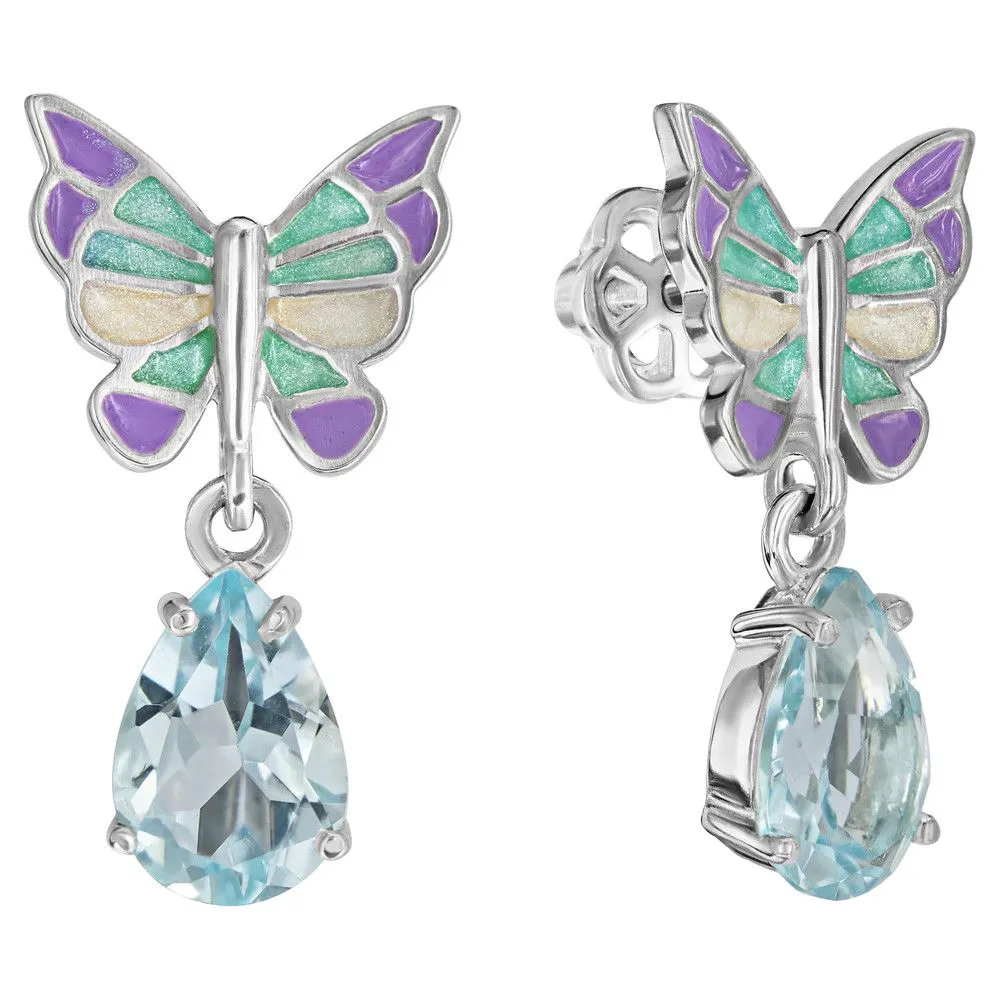 Серебряные серьги с натуральным голубым топазом и эмалью - коллекция Бабочка, покрытие Чистое Серебро. Средний вес украшения с камнями 3.29 гр. Месторождение: Топаз (Ильменские горы, Россия). Топаз (Натуральный) груша 6*9 мм., средний вес: 1.59 карат. Все изделия собственного производства и имеют гарантию 12 месяцев, к каждому изделию прилагается паспорт. Арт. 8441AG. Топаз – камень, который отличаются особенным блеском и многообразной гаммой. Сверхтвёрдый и сверхпрочный, он наделен и лечебными, и магическими свойствами. Считалось, что амулет из топаза способен благоприятно повлиять на зачатие, потому часто дарился бездетным парам. Это камень дружбы и благоразумия, радости, оптимизма и надежды.