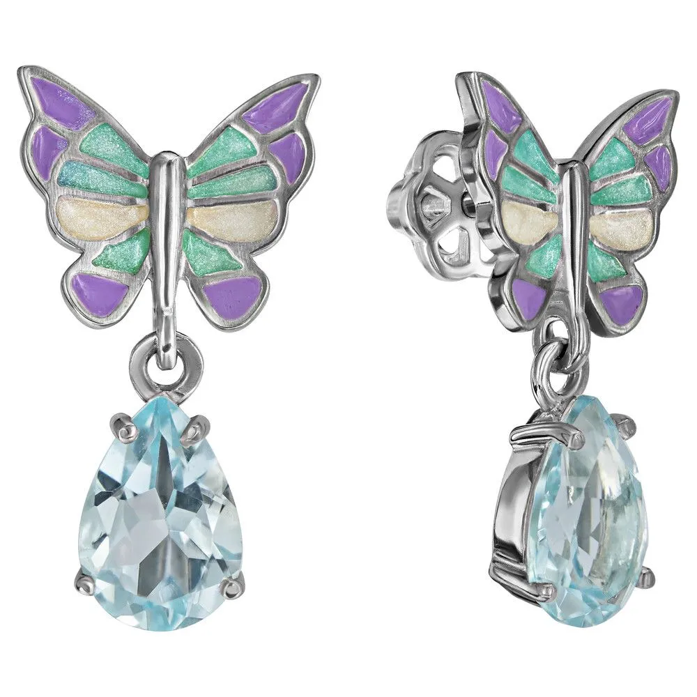 Серебряные серьги с натуральным голубым топазом и эмалью - коллекция Бабочка, покрытие Палладий. Средний вес украшения с камнями 3.29 гр. Месторождение: Топаз (Ильменские горы, Россия). Топаз (Натуральный) груша 6*9 мм., средний вес: 1.59 карат. Все изделия собственного производства и имеют гарантию 12 месяцев, к каждому изделию прилагается паспорт. Арт. 8441PD. Топаз – камень, который отличаются особенным блеском и многообразной гаммой. Сверхтвёрдый и сверхпрочный, он наделен и лечебными, и магическими свойствами. Считалось, что амулет из топаза способен благоприятно повлиять на зачатие, потому часто дарился бездетным парам. Это камень дружбы и благоразумия, радости, оптимизма и надежды.