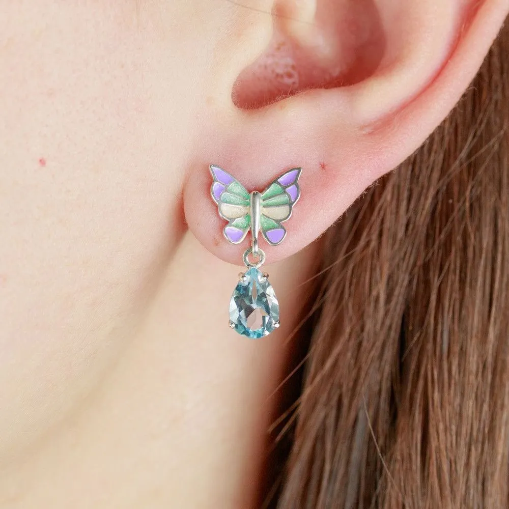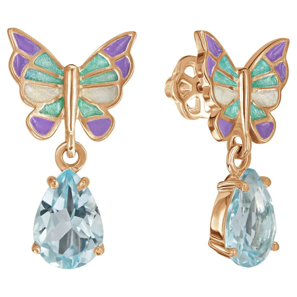 Серебряные серьги с натуральным голубым топазом и эмалью - коллекция Бабочка, покрытие Розовое Золото. Средний вес украшения с камнями 3.29 гр. Месторождение: Топаз (Ильменские горы, Россия). Топаз (Натуральный) груша 6*9 мм., средний вес: 1.59 карат. Все изделия собственного производства и имеют гарантию 12 месяцев, к каждому изделию прилагается паспорт. Арт. 8441PG. Топаз – камень, который отличаются особенным блеском и многообразной гаммой. Сверхтвёрдый и сверхпрочный, он наделен и лечебными, и магическими свойствами. Считалось, что амулет из топаза способен благоприятно повлиять на зачатие, потому часто дарился бездетным парам. Это камень дружбы и благоразумия, радости, оптимизма и надежды.