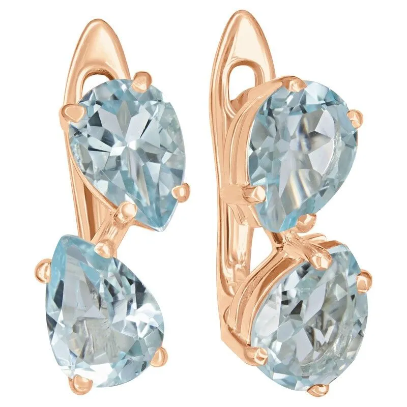Серебряные серьги с натуральным топазом - коллекция Дуэт / покрытие Красное Золото.Средний вес украшения с камнями 2.84 гр.Месторождение(я): Топаз (Ильменские горы, Россия).Ювелирные вставки:Топаз (Натуральный) груша 5*7 мм., средний вес: 0.85 карат.Все изделия собственного производства и имеют гарантию 12 месяцев. Арт. 8678RG . Топаз – камень, который отличаются особенным блеском и многообразной гаммой. Сверхтвёрдый и сверхпрочный, он наделен и лечебными, и магическими свойствами. Считалось, что амулет из топаза способен благоприятно повлиять на зачатие, потому часто дарился бездетным парам. Это камень дружбы и благоразумия, радости, оптимизма и надежды.