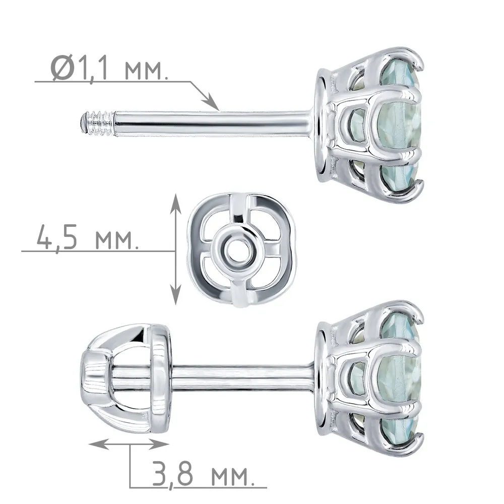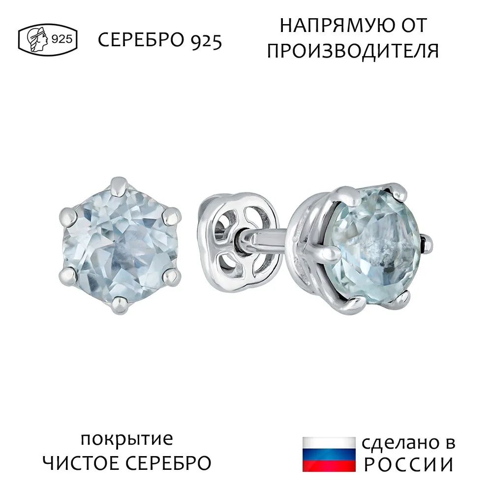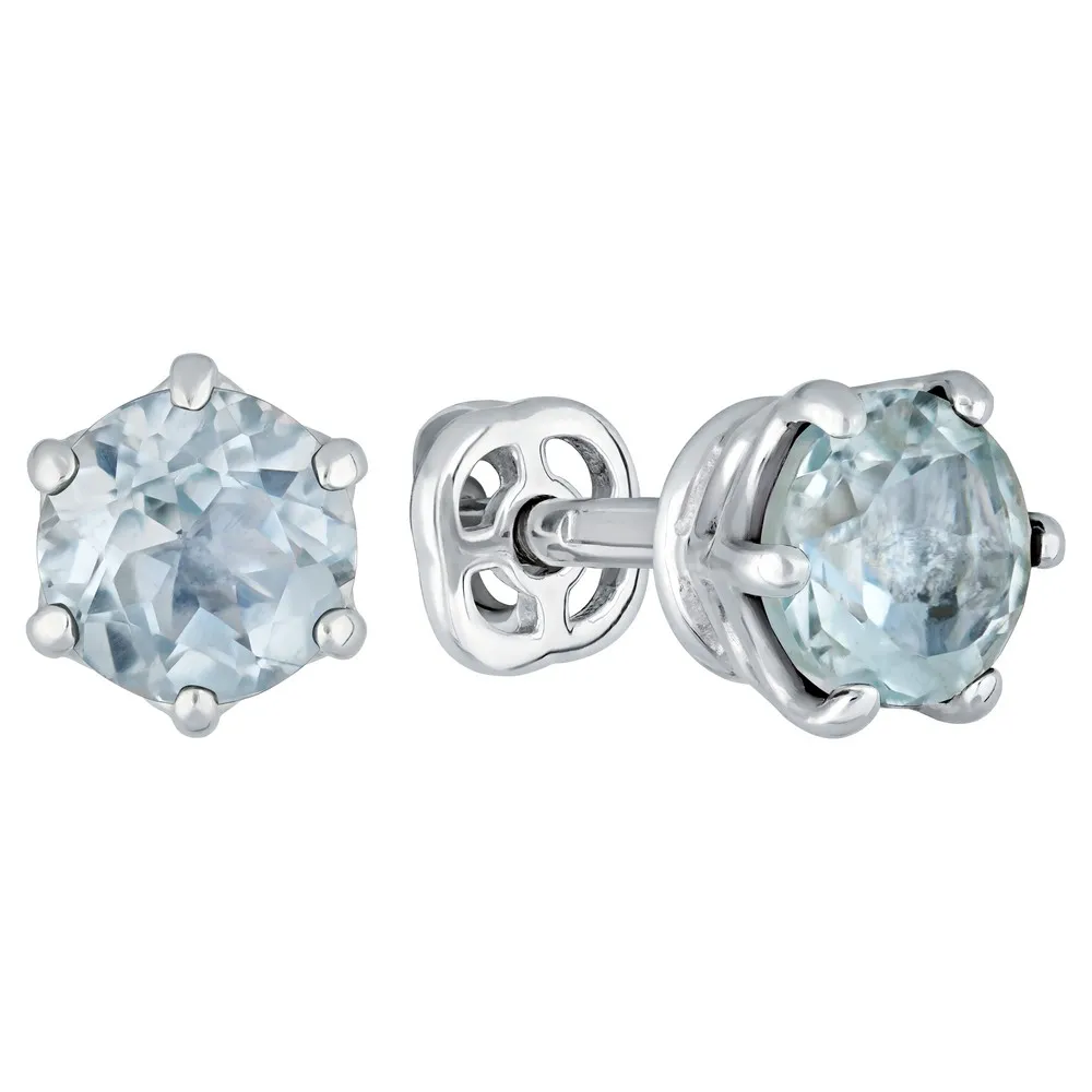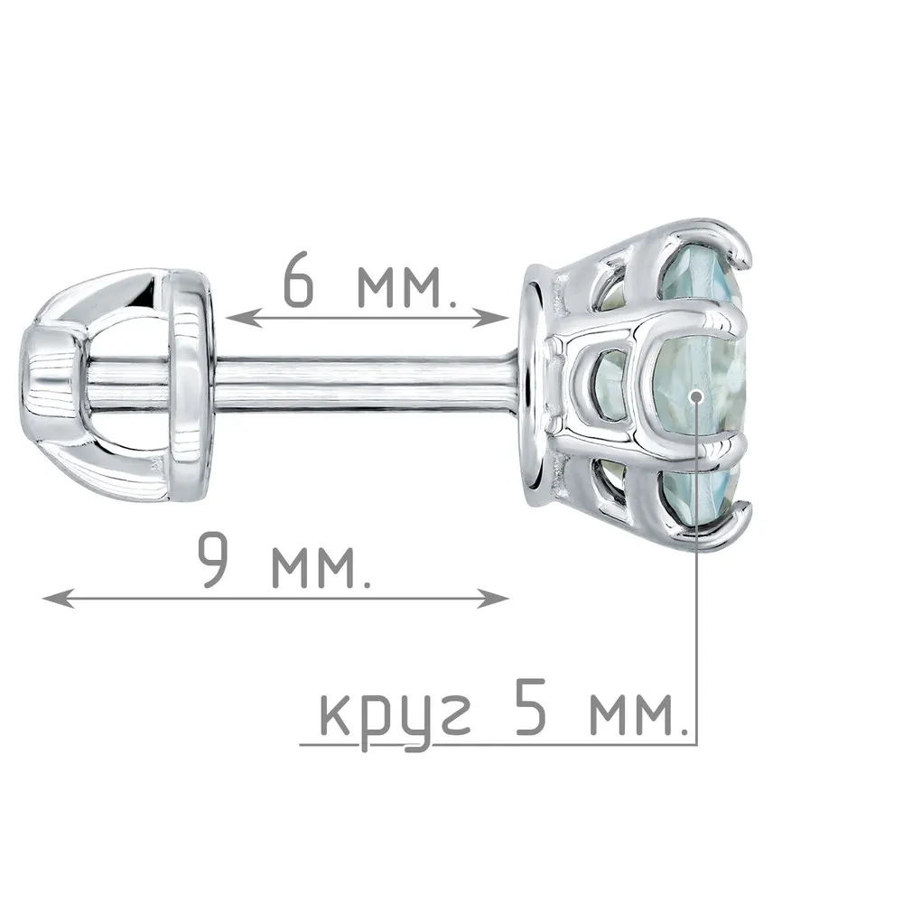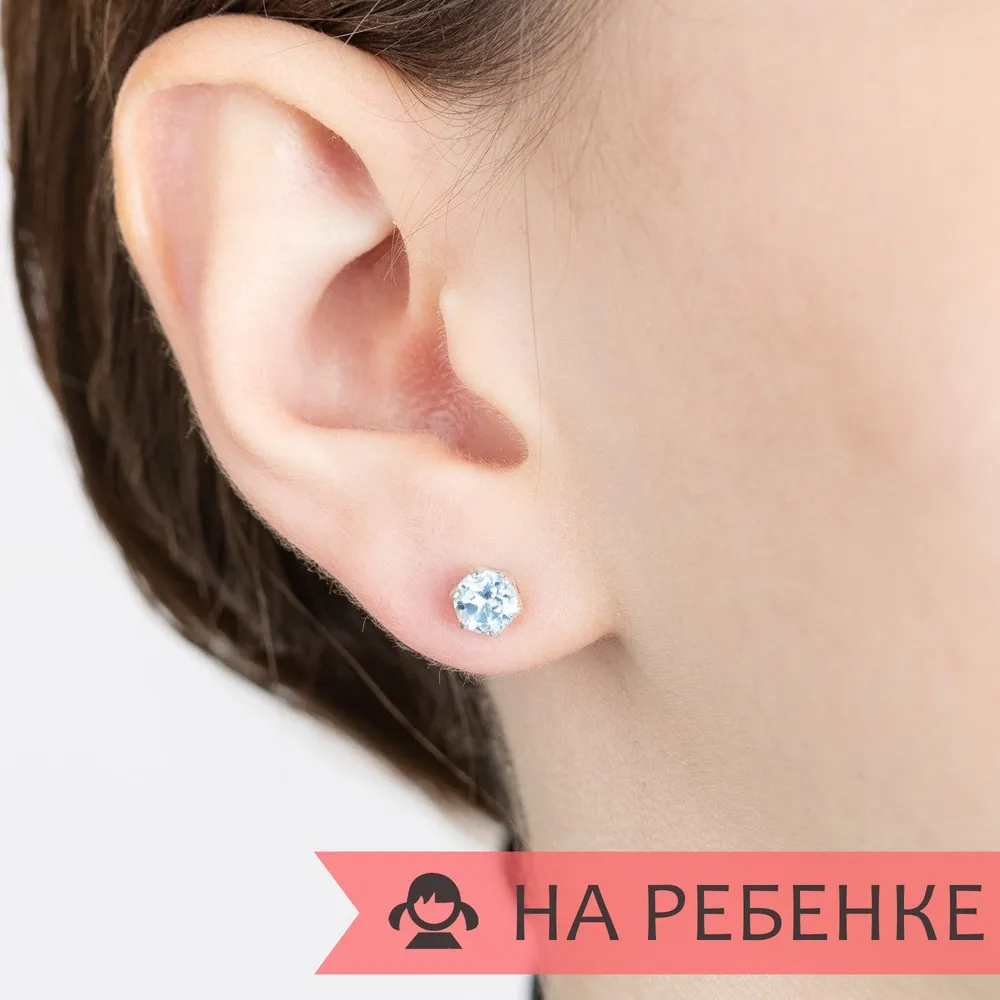 Серебряные серьги гвоздики (пусеты) с натуральным голубым топазом (Sky) 5 мм. / Чистое Серебро.