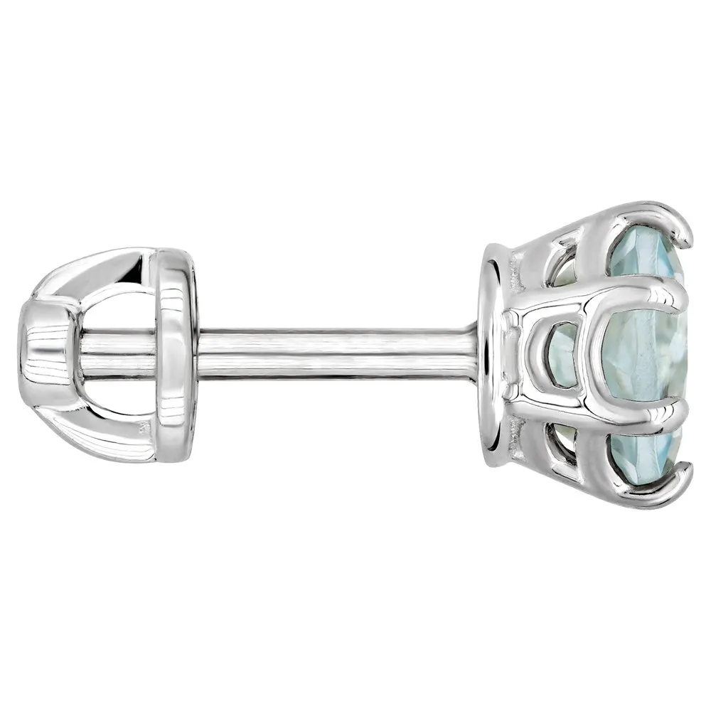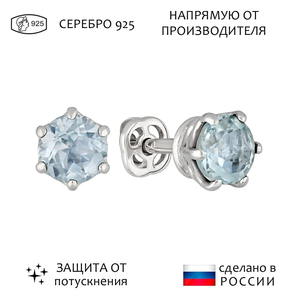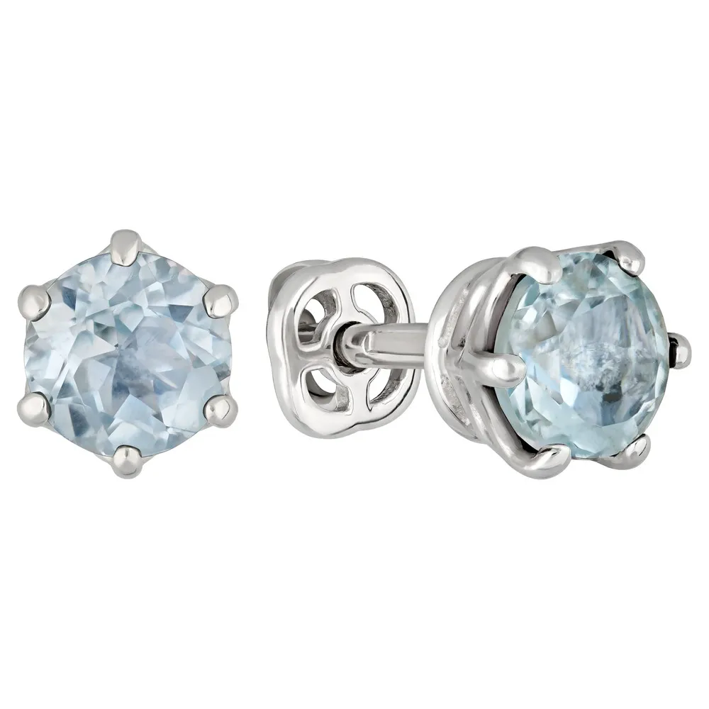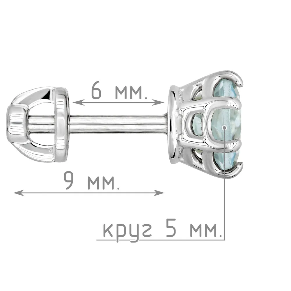 Серебряные серьги гвоздики (пусеты) с натуральным голубым топазом (Sky) 5 мм. / Без покрытия.