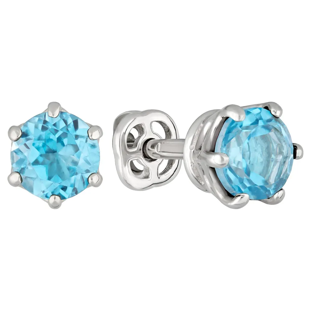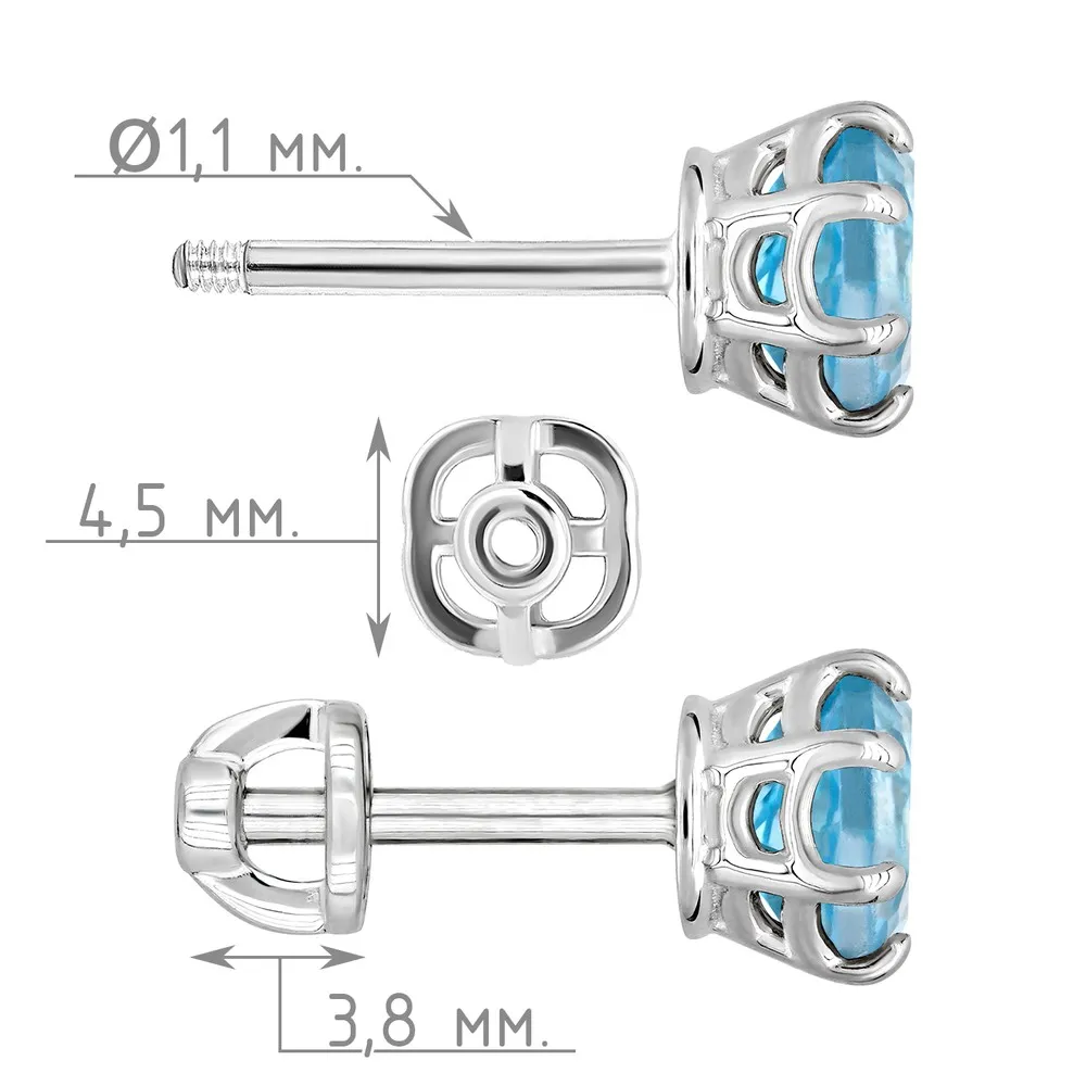 Серебряные серьги гвоздики (пусеты) с натуральным голубым топазом (Swiss) 5 мм. / Без покрытия.