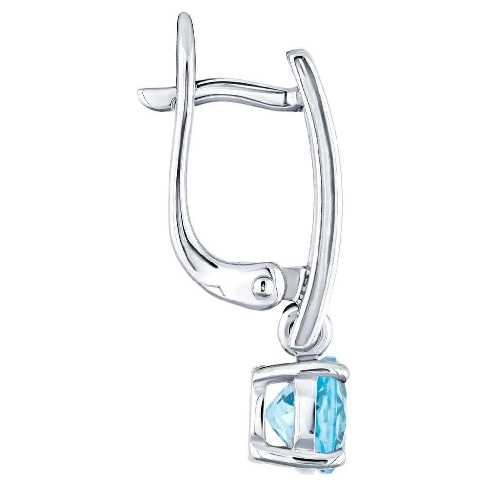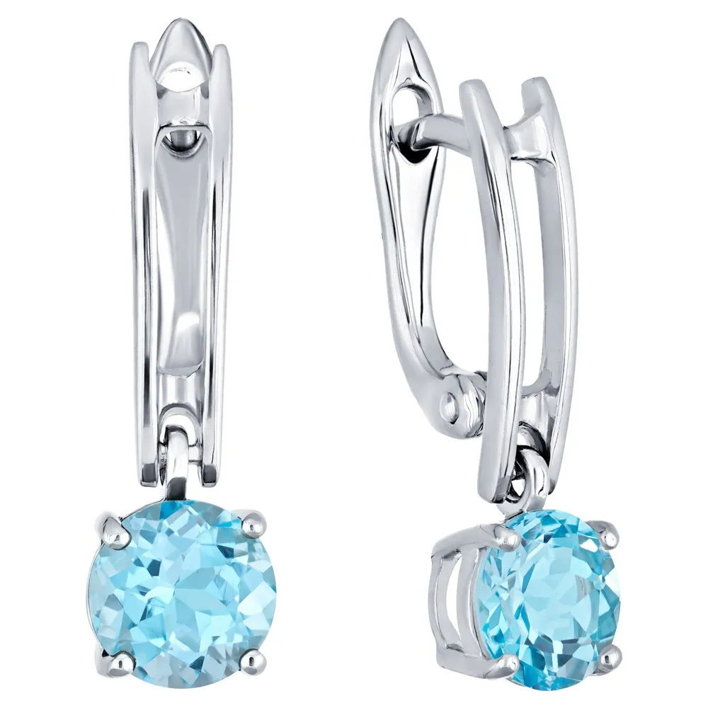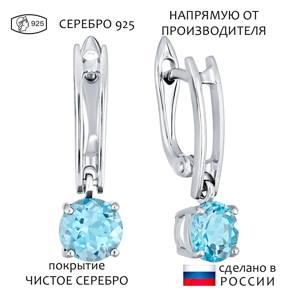 Серебряные серьги с натуральным голубым топазом (Swiss) - коллекция Классик (мини) / Чистое Серебро.