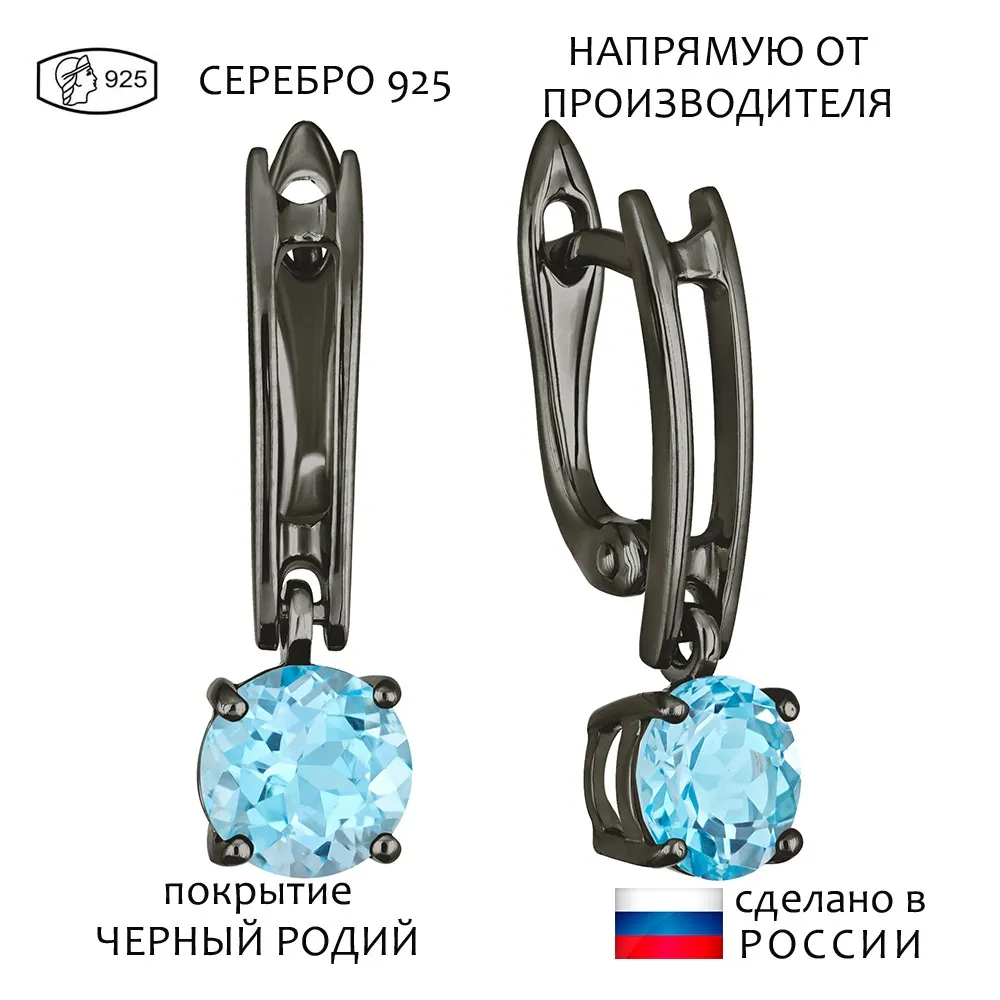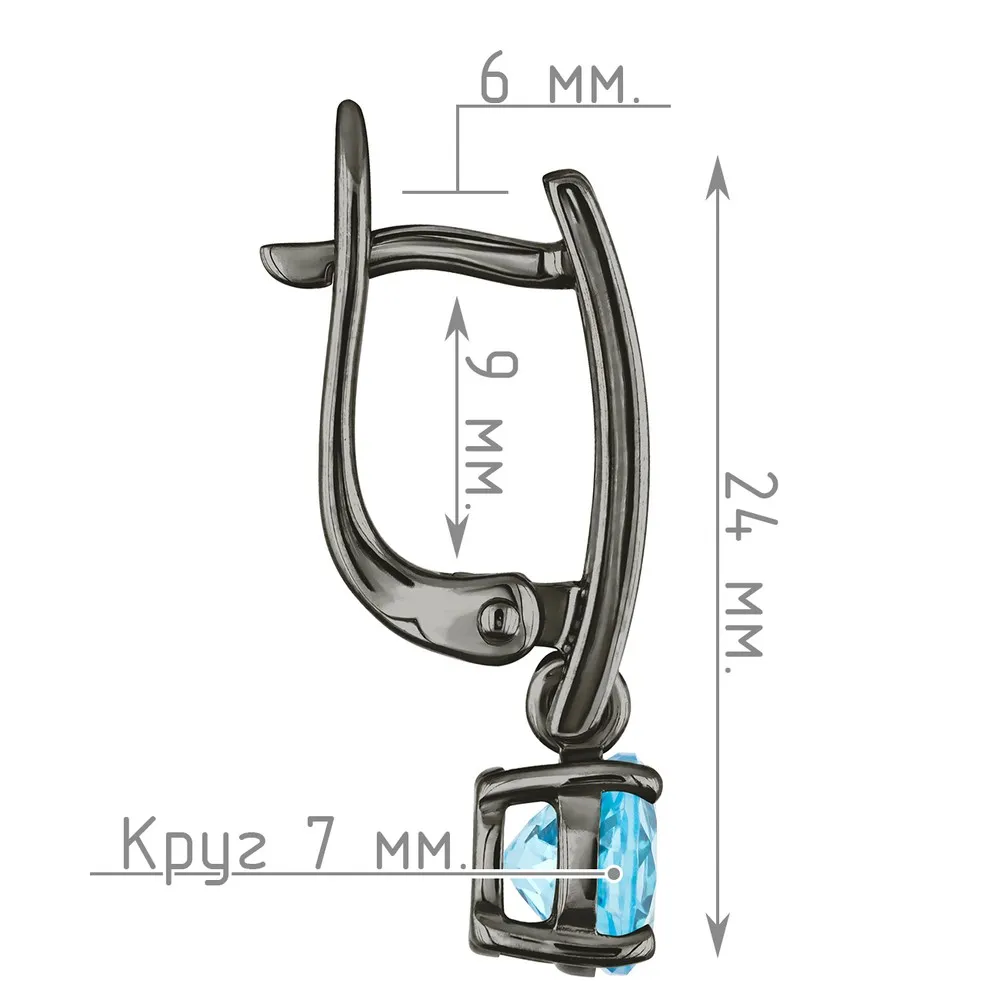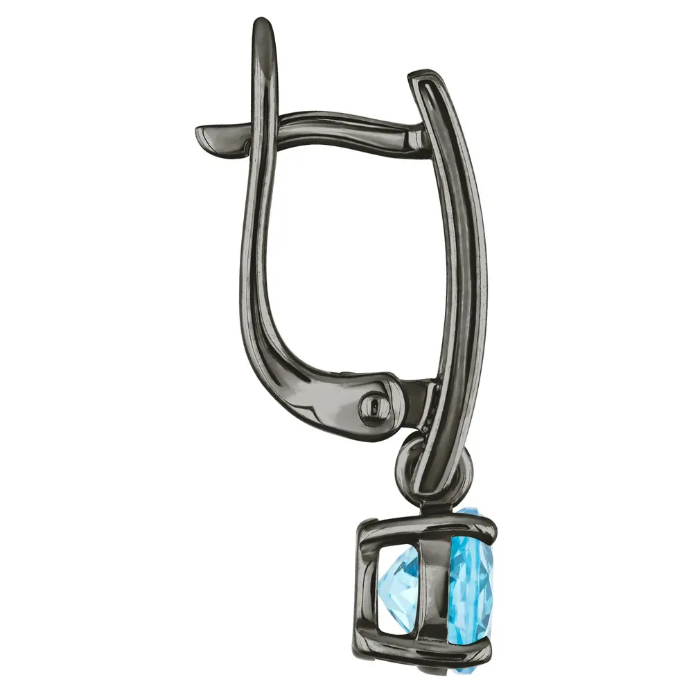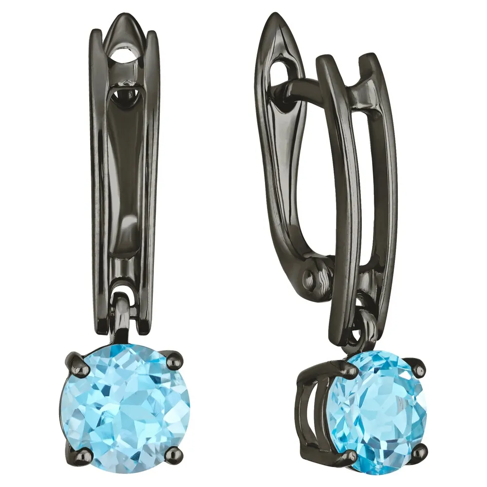 Серебряные серьги с натуральным голубым топазом (Swiss) - коллекция Классик (мини) / Черный Родий.