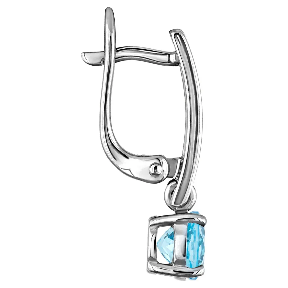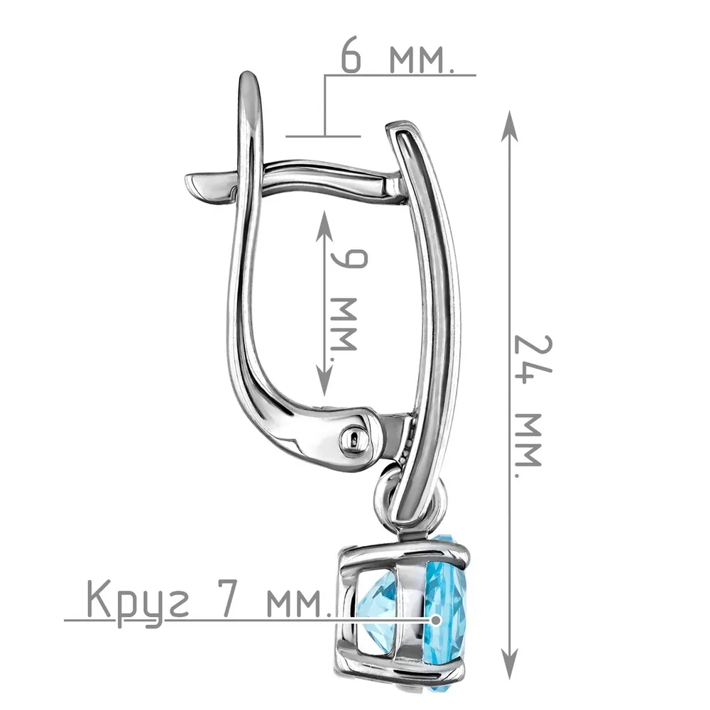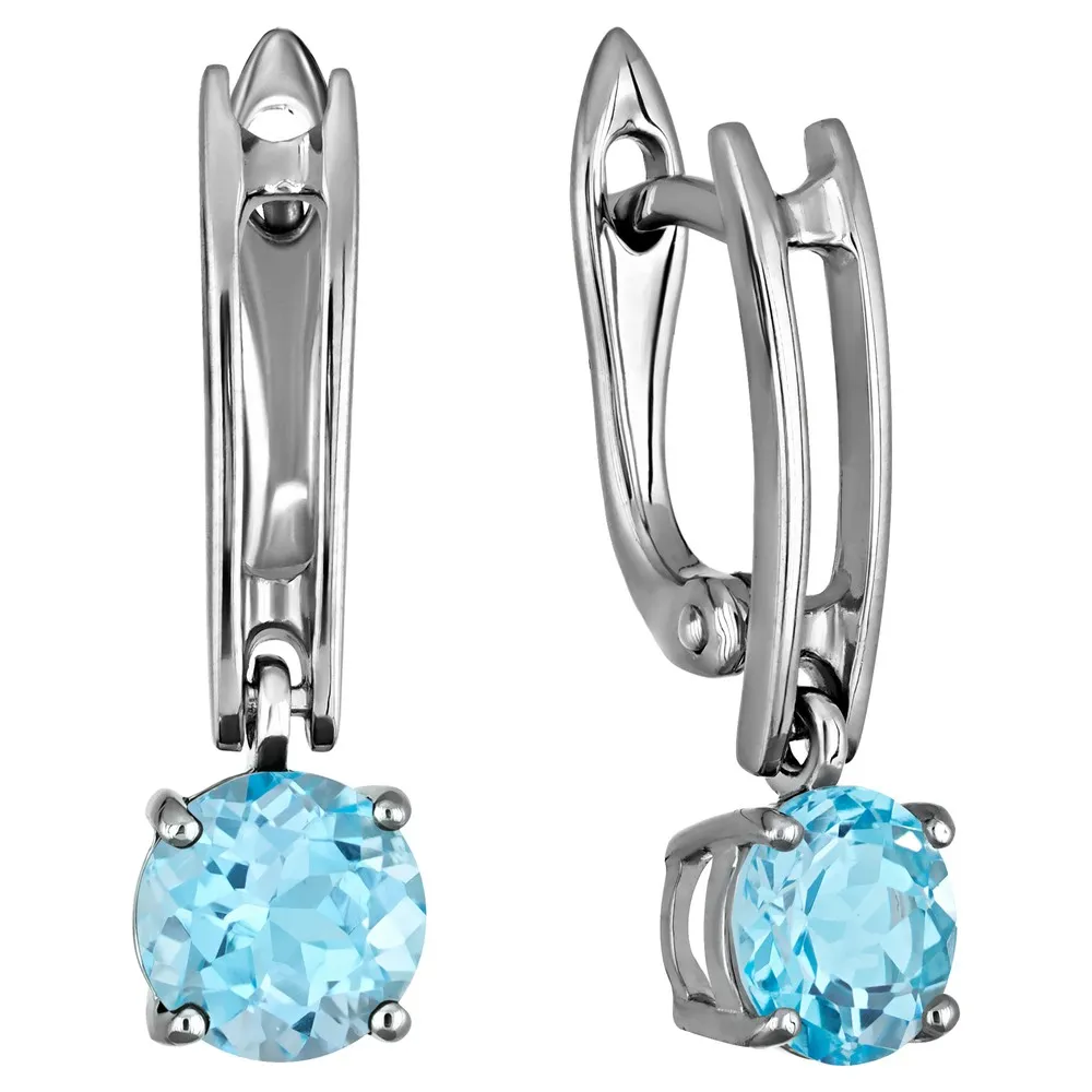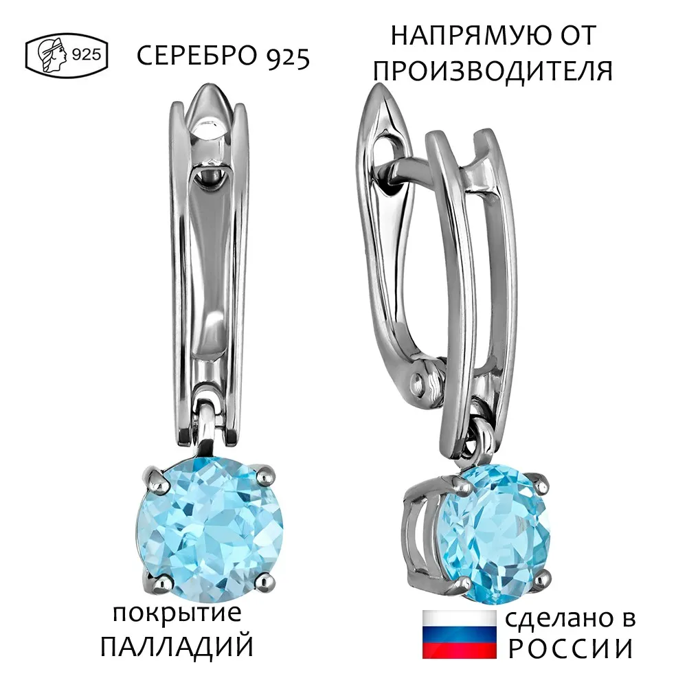 Серебряные серьги с натуральным голубым топазом (Swiss) - коллекция Классик (мини) / Палладий.