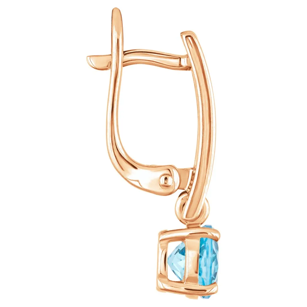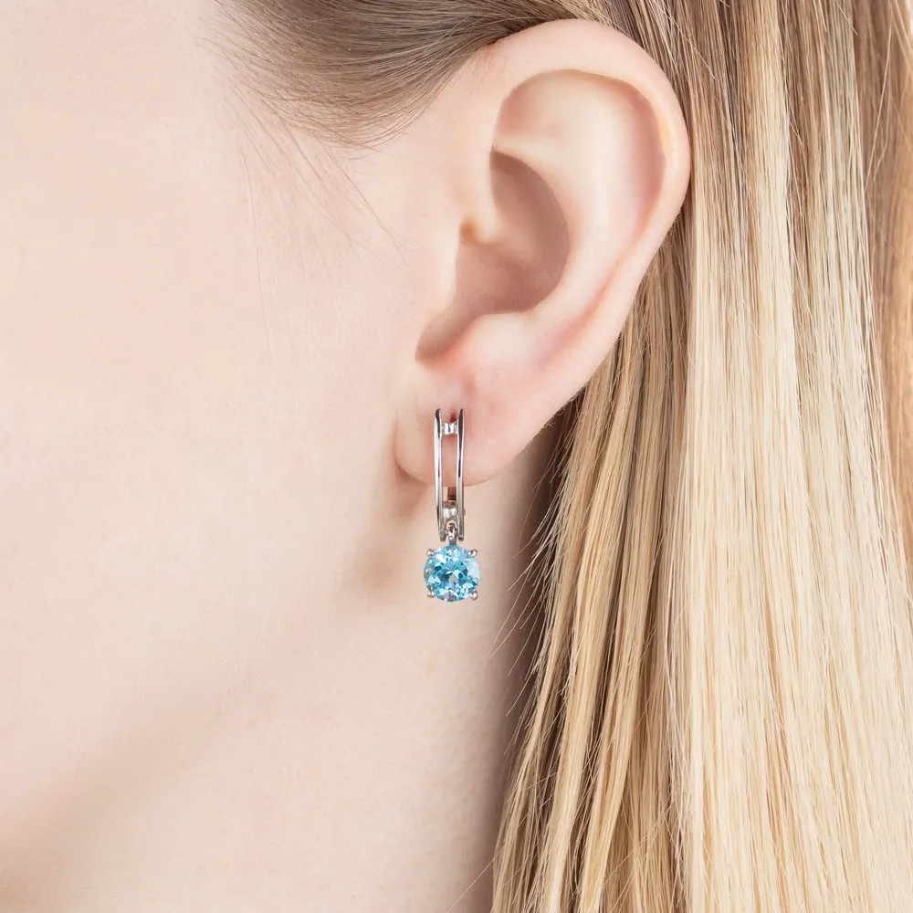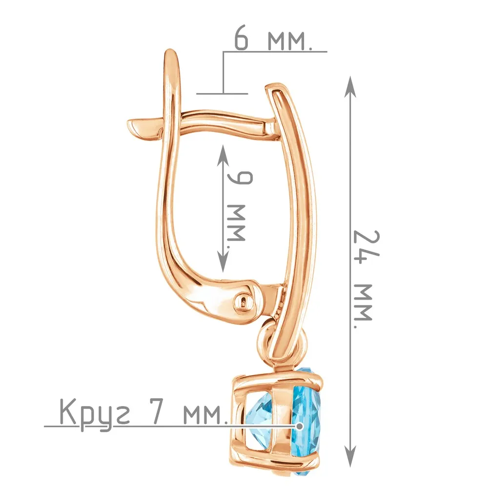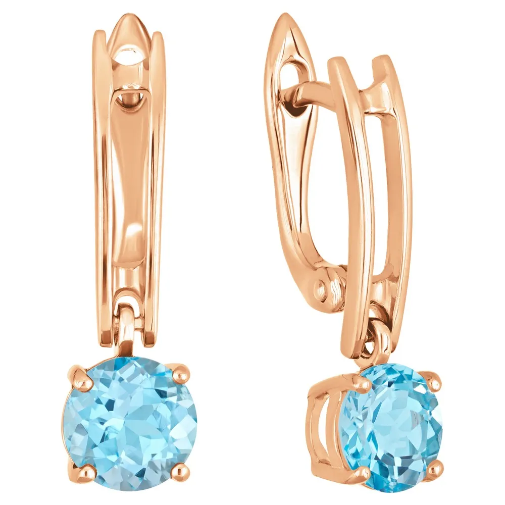 Серебряные серьги с натуральным голубым топазом (Swiss) - коллекция Классик (мини) / Красное золото.