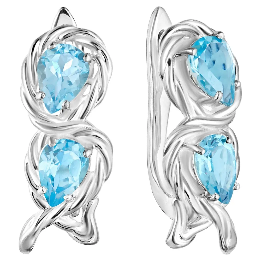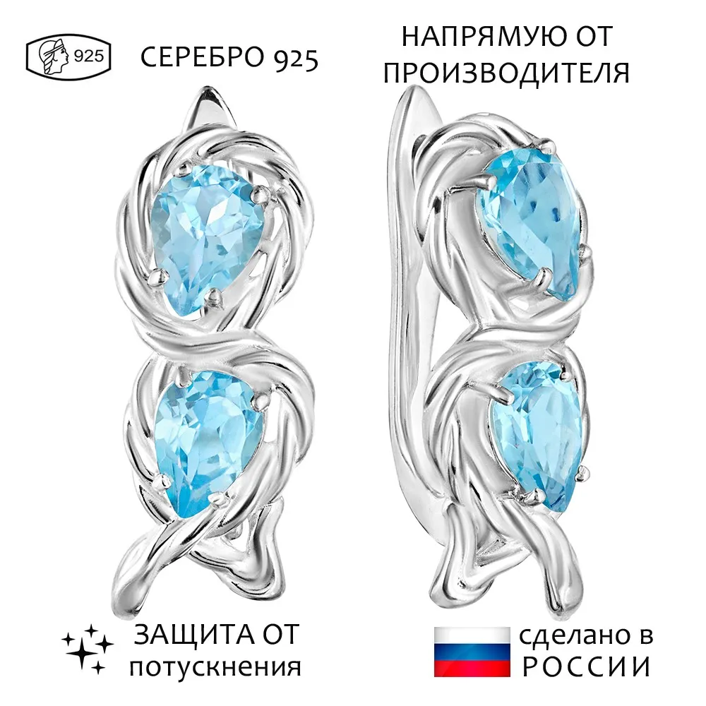 Серебряные серьги с натуральным голубым топазом (Swiss) - коллекция Ривьера / Без покрытия.