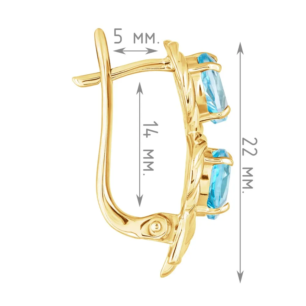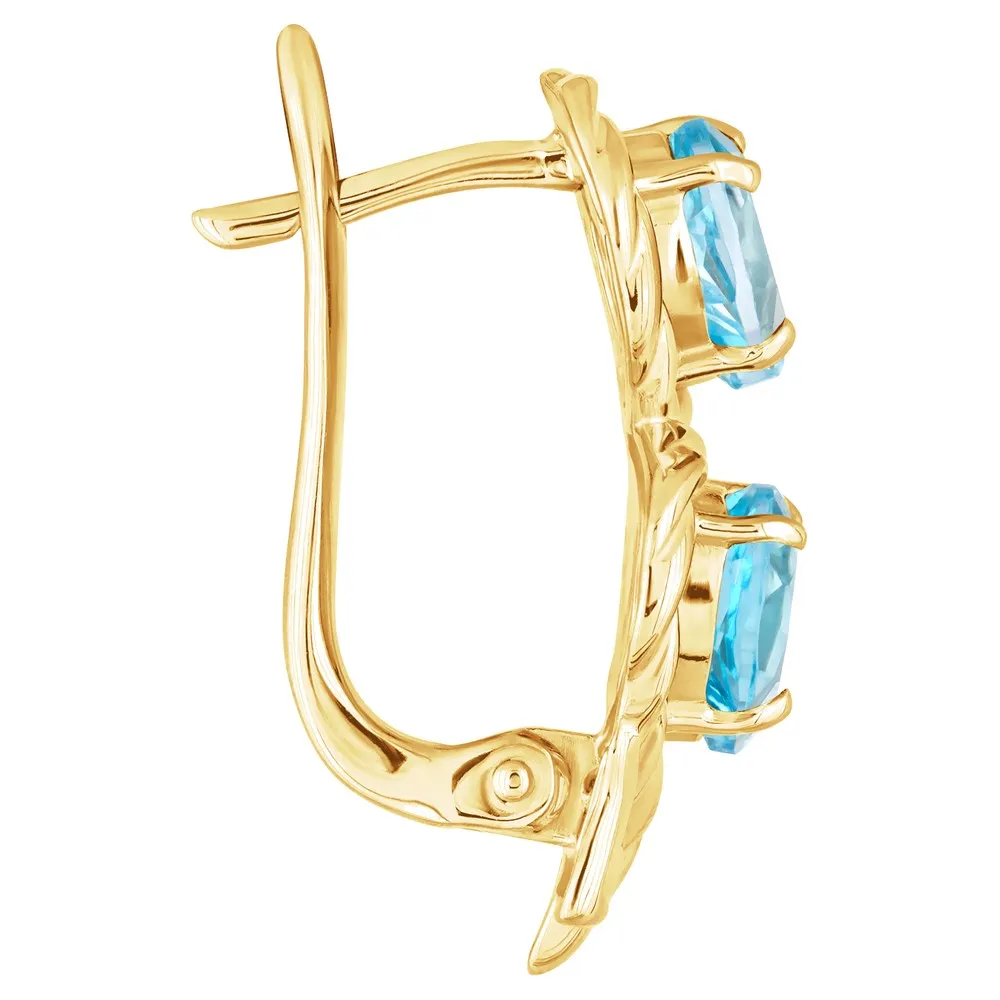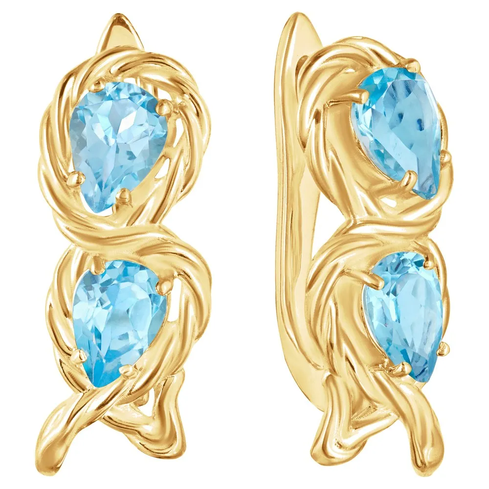 Серебряные серьги с натуральным голубым топазом (Swiss) - коллекция Ривьера / Желтое Золото.