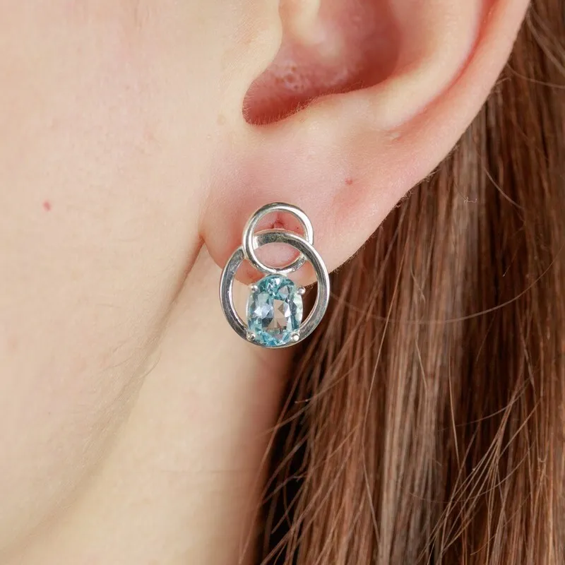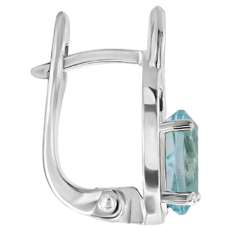 Серебряные серьги с натуральным голубым топазом - коллекция Юнона / покрытие Белый Родий