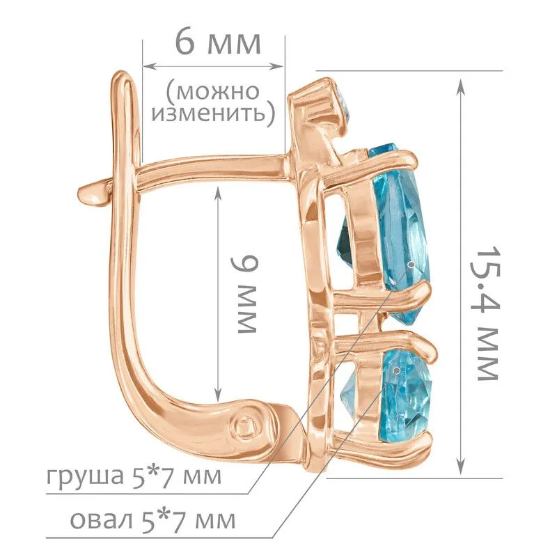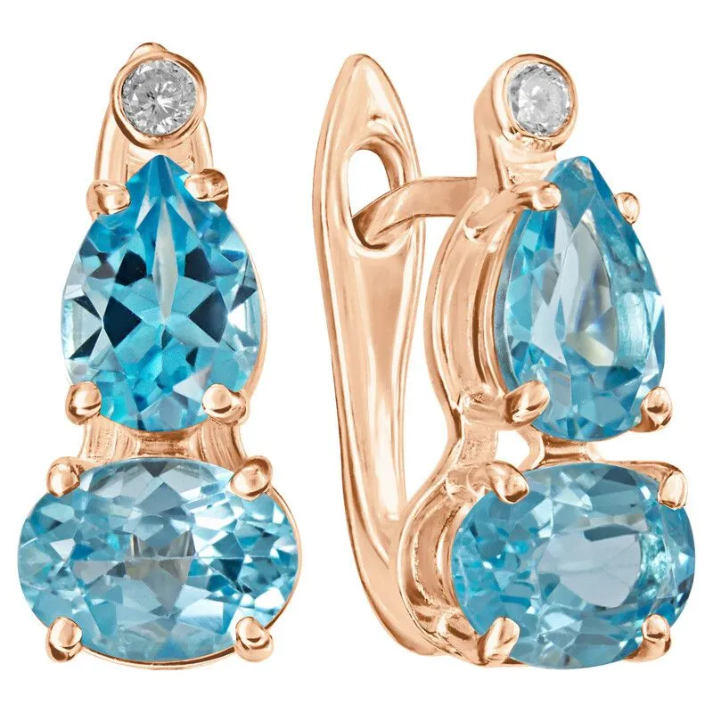 Серебряные серьги с натуральным топазом (Swiss) - коллекция Сансара / покрытие Красное Золото.Средний вес украшения с камнями 3.33 гр.Месторождение(я): Топаз (Ильменские горы, Россия).Ювелирные вставки:Топаз (Натуральный) овал 5*7 мм., средний вес: 0.91 карат.Топаз (Натуральный) груша 5*7 мм., средний вес: 0.85 карат.Белый Нанокристалл круг 2 мм., средний вес: 0.06 карат.Все изделия собственного производства и имеют гарантию 12 месяцев. Арт. 8696RG . Топаз – камень, который отличаются особенным блеском и многообразной гаммой. Сверхтвёрдый и сверхпрочный, он наделен и лечебными, и магическими свойствами. Считалось, что амулет из топаза способен благоприятно повлиять на зачатие, потому часто дарился бездетным парам. Это камень дружбы и благоразумия, радости, оптимизма и надежды.