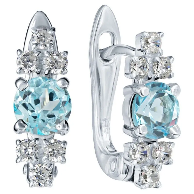 Серебряные серьги с натуральным топазом (Swiss) - коллекция Нова / покрытие Чистое Серебро.Средний вес украшения с камнями 2.58 гр.Месторождение(я): Топаз (Ильменские горы, Россия).Ювелирные вставки:Топаз (Натуральный) круг 5 мм., средний вес: 0.58 карат.Белый Нанокристалл круг 2 мм., средний вес: 0.06 карат.Все изделия собственного производства и имеют гарантию 12 месяцев. Арт. 8710AG . Топаз – камень, который отличаются особенным блеском и многообразной гаммой. Сверхтвёрдый и сверхпрочный, он наделен и лечебными, и магическими свойствами. Считалось, что амулет из топаза способен благоприятно повлиять на зачатие, потому часто дарился бездетным парам. Это камень дружбы и благоразумия, радости, оптимизма и надежды.