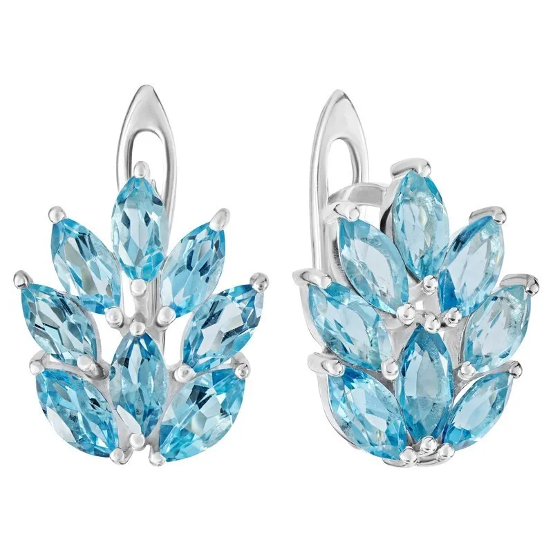 Серебряные серьги с натуральным голубым топазом (Swiss) - коллекция Искра / покрытие Чистое Серебро