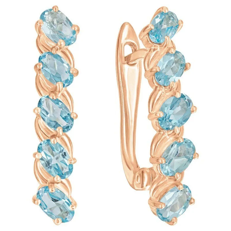 Серебряные серьги с натуральным голубым топазом (Swiss) - коллекция Колосок / покрытие Красное Золото