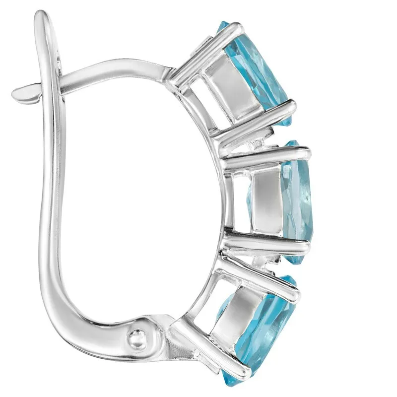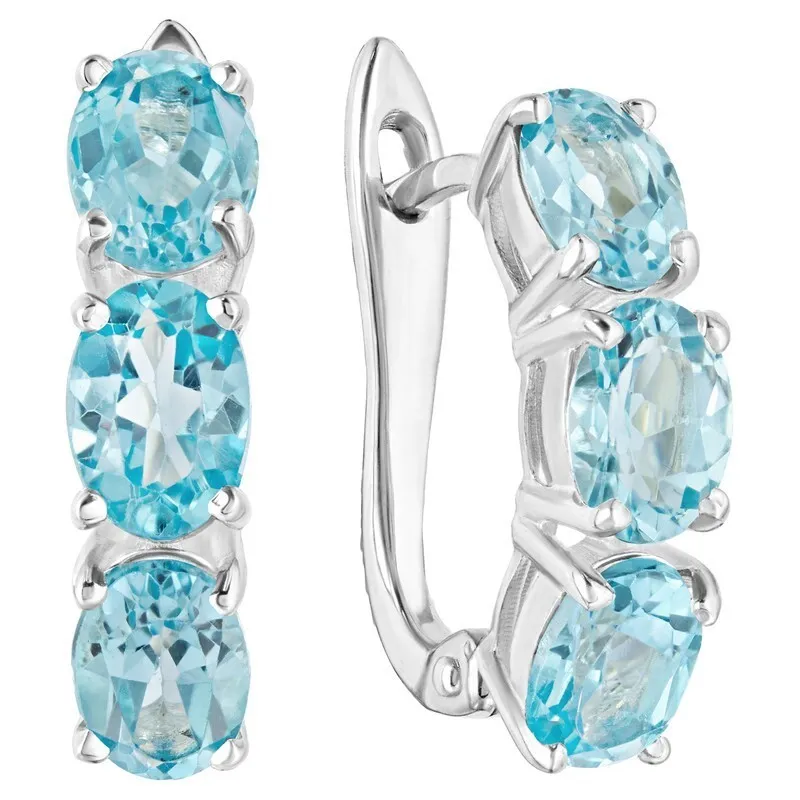 Серебряные серьги с натуральным голубым топазом (Swiss) - коллекция Муза. Средний вес украшения с камнями 4.24 гр. Месторождение: Голубой топаз (Шри-Ланка). Топаз (Натуральный) овал 5*7 мм., средний вес: 0.95 карат. Все изделия собственного производства и имеют гарантию 12 месяцев. Арт. 8521. Топаз – камень, который отличаются особенным блеском и многообразной гаммой. Сверхтвёрдый и сверхпрочный, он наделен и лечебными, и магическими свойствами. Считалось, что амулет из топаза способен благоприятно повлиять на зачатие, потому часто дарился бездетным парам. Это камень дружбы и благоразумия, радости, оптимизма и надежды.