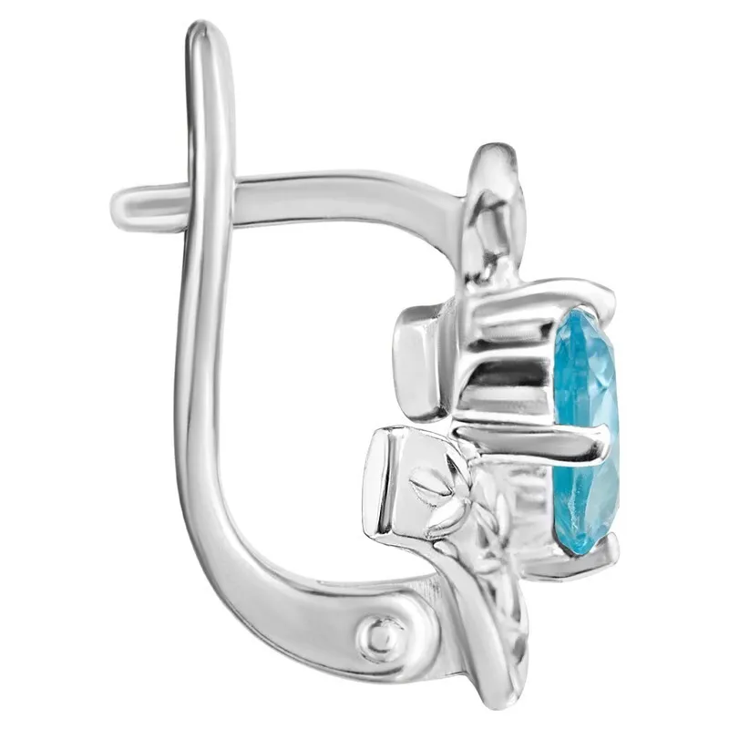 Серебряные серьги с натуральным голубым топазом (Swiss) - коллекция Тея. Средний вес украшения с камнями 3.42 гр. Месторождение: Голубой топаз (Шри-Ланка). Топаз (Натуральный) овал 5*7 мм., средний вес: 0.95 карат. Все изделия собственного производства и имеют гарантию 12 месяцев. Арт. 8534. Топаз – камень, который отличаются особенным блеском и многообразной гаммой. Сверхтвёрдый и сверхпрочный, он наделен и лечебными, и магическими свойствами. Считалось, что амулет из топаза способен благоприятно повлиять на зачатие, потому часто дарился бездетным парам. Это камень дружбы и благоразумия, радости, оптимизма и надежды.