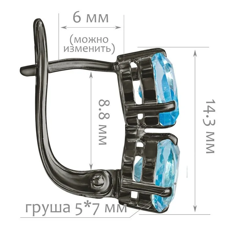 Серебряные серьги с натуральным топазом (Swiss) - коллекция Дуэт / покрытие Черный Родий.Средний вес украшения с камнями 2.96 гр.Месторождение(я): Топаз (Ильменские горы, Россия).Ювелирные вставки:Топаз (Натуральный) груша 5*7 мм., средний вес: 0.85 карат.Все изделия собственного производства и имеют гарантию 12 месяцев. Арт. 8681BR . Топаз – камень, который отличаются особенным блеском и многообразной гаммой. Сверхтвёрдый и сверхпрочный, он наделен и лечебными, и магическими свойствами. Считалось, что амулет из топаза способен благоприятно повлиять на зачатие, потому часто дарился бездетным парам. Это камень дружбы и благоразумия, радости, оптимизма и надежды.