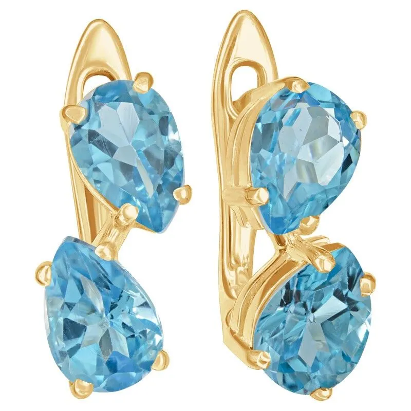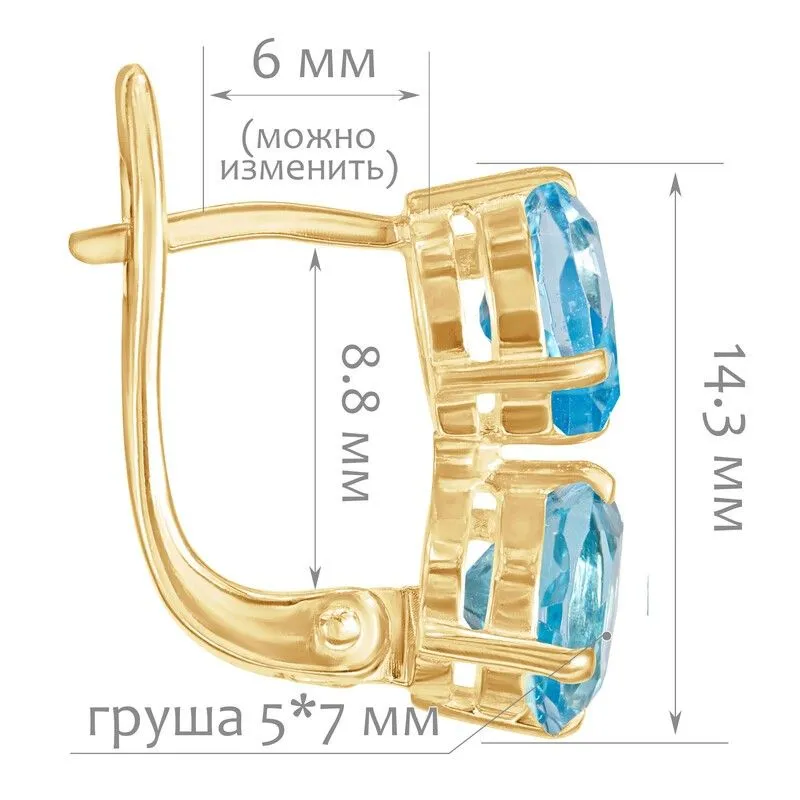 Серебряные серьги с натуральным топазом (Swiss) - коллекция Дуэт / покрытие Желтое Золото.Средний вес украшения с камнями 2.85 гр.Месторождение(я): Топаз (Ильменские горы, Россия).Ювелирные вставки:Топаз (Натуральный) груша 5*7 мм., средний вес: 0.85 карат.Все изделия собственного производства и имеют гарантию 12 месяцев. Арт. 8681YG . Топаз – камень, который отличаются особенным блеском и многообразной гаммой. Сверхтвёрдый и сверхпрочный, он наделен и лечебными, и магическими свойствами. Считалось, что амулет из топаза способен благоприятно повлиять на зачатие, потому часто дарился бездетным парам. Это камень дружбы и благоразумия, радости, оптимизма и надежды.