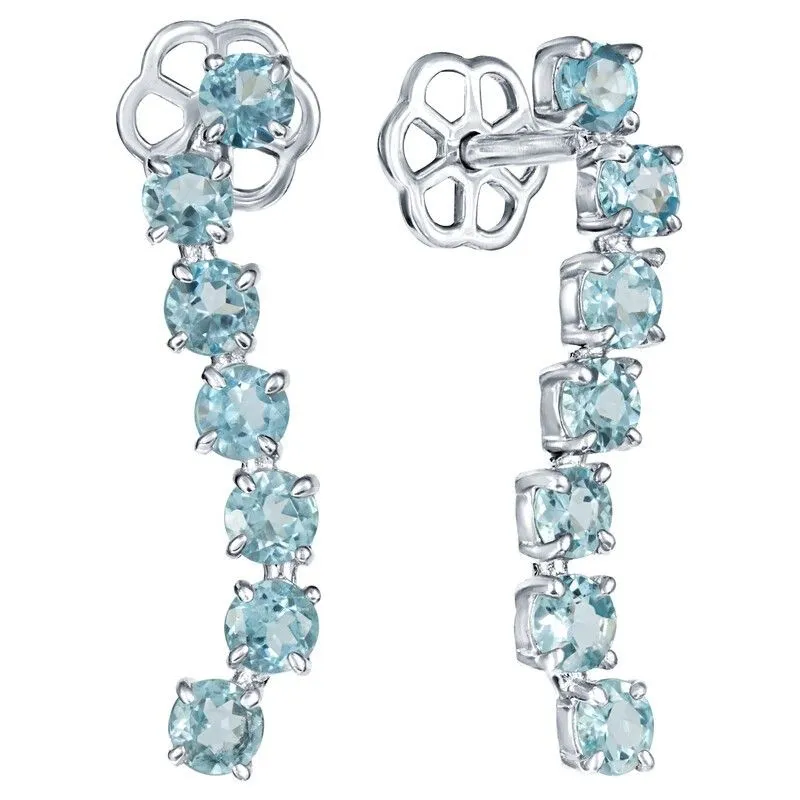 Серебряные серьги с натуральным топазом (Swiss) - коллекция Волна / покрытие Чистое Серебро.Средний вес украшения с камнями 1.81 гр.Месторождение: Топаз (Ильменские горы, Россия)Ювелирные вставки:Топаз (Натуральный) круг 3 мм., средний вес: 0.63 карат.Все изделия собственного производства и имеют гарантию 12 месяцев. Арт. 8738AG . Топаз – камень, который отличаются особенным блеском и многообразной гаммой. Сверхтвёрдый и сверхпрочный, он наделен и лечебными, и магическими свойствами. Считалось, что амулет из топаза способен благоприятно повлиять на зачатие, потому часто дарился бездетным парам. Это камень дружбы и благоразумия, радости, оптимизма и надежды.