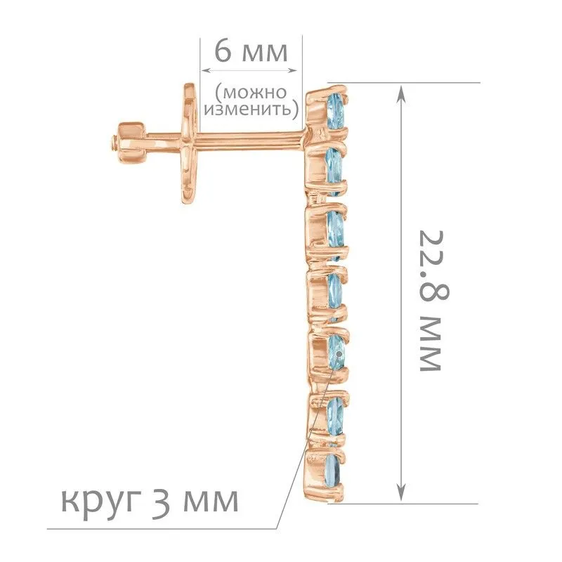 Серебряные серьги с натуральным топазом (Swiss) - коллекция Волна / покрытие Красное Золото.Средний вес украшения с камнями 1.75 гр.Месторождение: Топаз (Ильменские горы, Россия)Ювелирные вставки:Топаз (Натуральный) круг 3 мм., средний вес: 0.9 карат.Все изделия собственного производства и имеют гарантию 12 месяцев. Арт. 8738RG . Топаз – камень, который отличаются особенным блеском и многообразной гаммой. Сверхтвёрдый и сверхпрочный, он наделен и лечебными, и магическими свойствами. Считалось, что амулет из топаза способен благоприятно повлиять на зачатие, потому часто дарился бездетным парам. Это камень дружбы и благоразумия, радости, оптимизма и надежды.