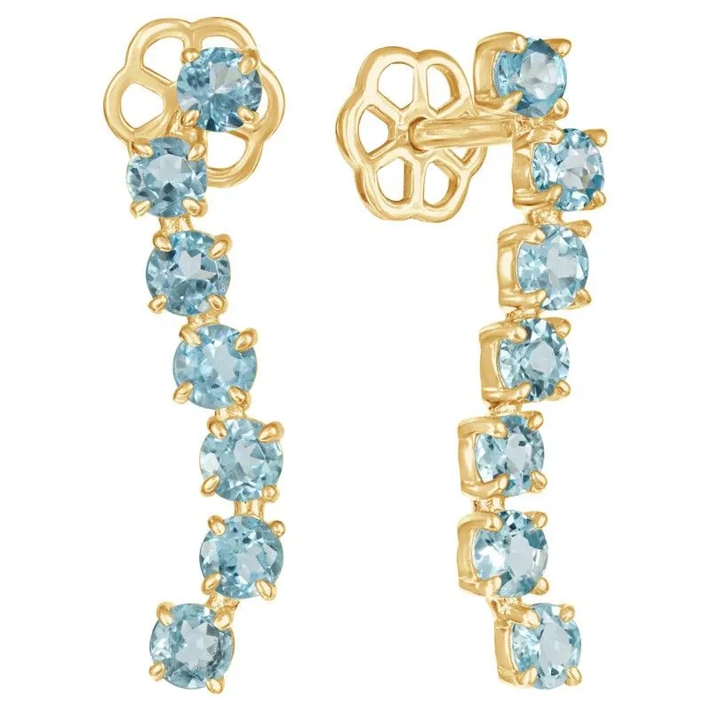 Серебряные серьги с натуральным топазом (Swiss) - коллекция Волна / покрытие Желтое Золото.Средний вес украшения с камнями 1.78 гр.Месторождение: Топаз (Ильменские горы, Россия)Ювелирные вставки:Топаз (Натуральный) круг 3 мм., средний вес: 0.63 карат.Все изделия собственного производства и имеют гарантию 12 месяцев. Арт. 8738YG . Топаз – камень, который отличаются особенным блеском и многообразной гаммой. Сверхтвёрдый и сверхпрочный, он наделен и лечебными, и магическими свойствами. Считалось, что амулет из топаза способен благоприятно повлиять на зачатие, потому часто дарился бездетным парам. Это камень дружбы и благоразумия, радости, оптимизма и надежды.
