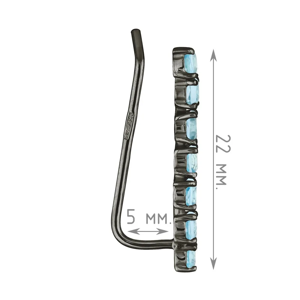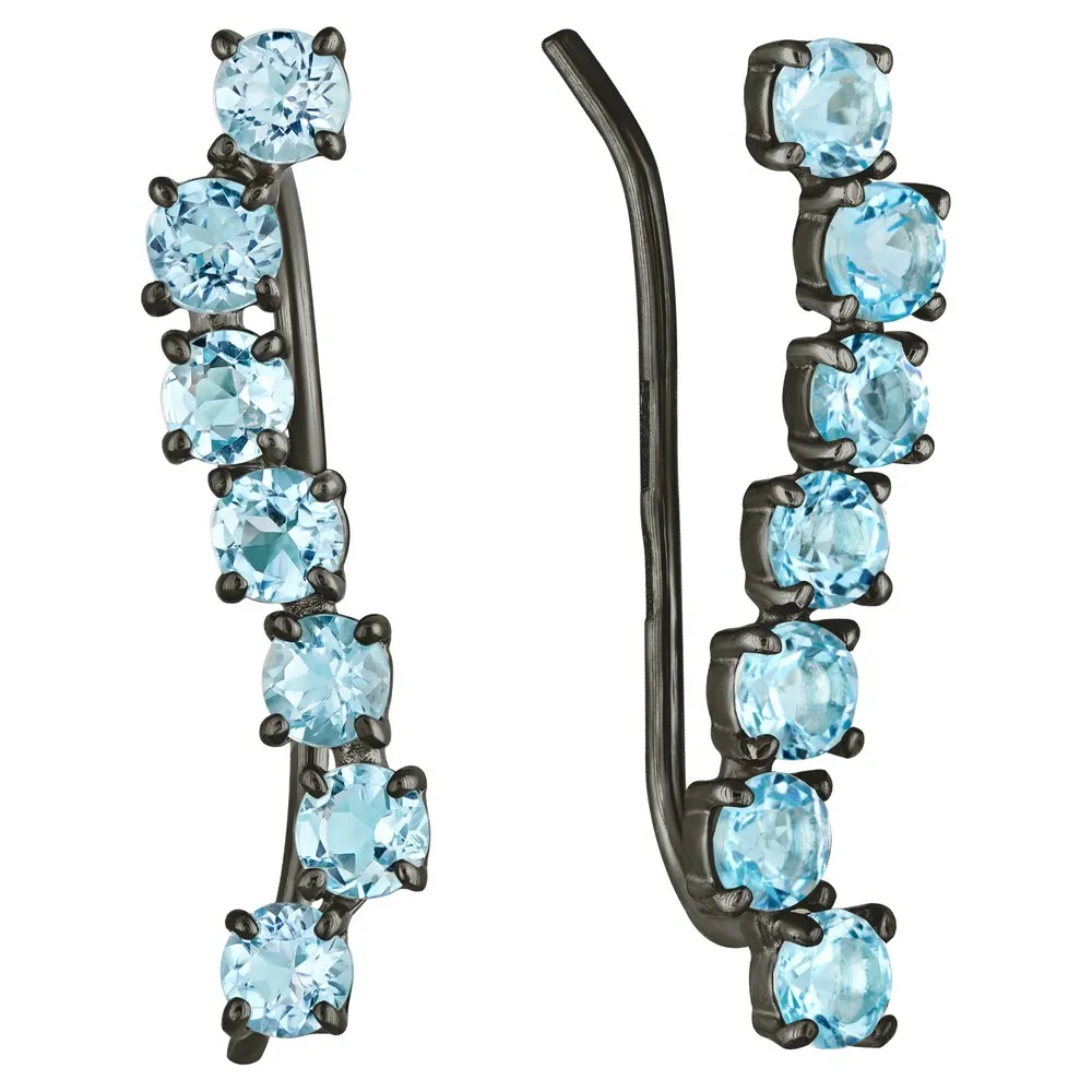 Серебряные серьги каффы с натуральным топазом (Swiss) - коллекция Волна / покрытие Черный Родий.Средний вес украшения с камнями 1.79 гр.Месторождение: Топаз (Ильменские горы, Россия)Ювелирные вставки:Топаз (Натуральный) круг 3 мм., средний вес: 0.58 карат.Все изделия собственного производства и имеют гарантию 12 месяцев. Арт. 8750BR . Топаз – камень, который отличаются особенным блеском и многообразной гаммой. Сверхтвёрдый и сверхпрочный, он наделен и лечебными, и магическими свойствами. Считалось, что амулет из топаза способен благоприятно повлиять на зачатие, потому часто дарился бездетным парам. Это камень дружбы и благоразумия, радости, оптимизма и надежды.