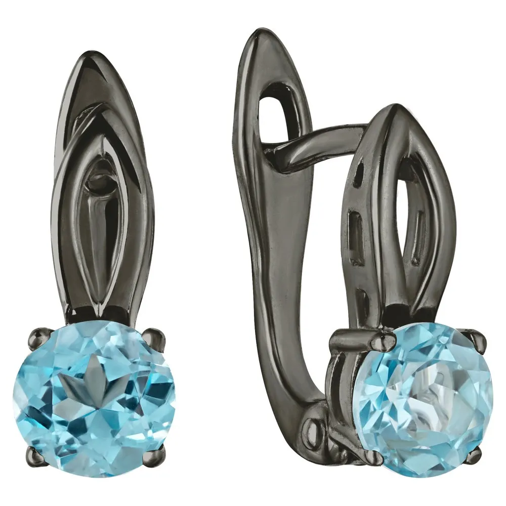Серебряные серьги с натуральным голубым топазом (Swiss) - коллекция Мона / покрытие Черный Родий. Средний вес украшения с камнями 2.53 гр. Месторождение: Топаз (Намибия) Ювелирные вставки: Топаз (Натуральный) круг 5 мм., средний вес: 0.66 карат. Все изделия собственного производства и имеют гарантию 12 месяцев, к каждому изделию прилагается паспорт. Арт. 8759BR