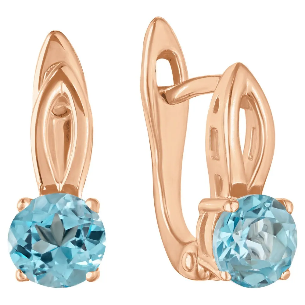 Серебряные серьги с натуральным голубым топазом (Swiss) - коллекция Мона / покрытие Красное золото. Средний вес украшения с камнями 2.54 гр. Месторождение: Топаз (Намибия) Ювелирные вставки: Топаз (Натуральный) круг 5 мм., средний вес: 0.66 карат. Все изделия собственного производства и имеют гарантию 12 месяцев, к каждому изделию прилагается паспорт. Арт. 8759RG