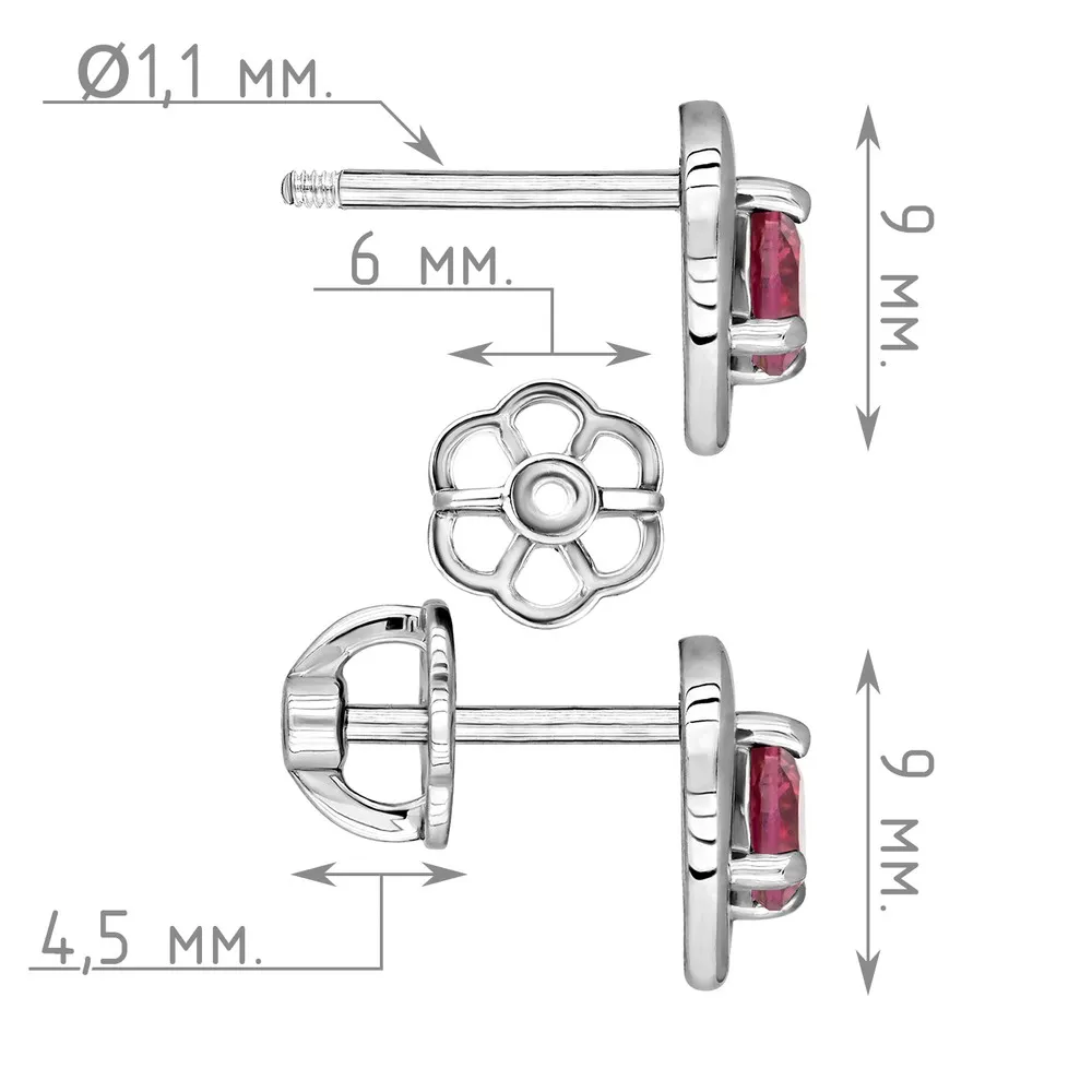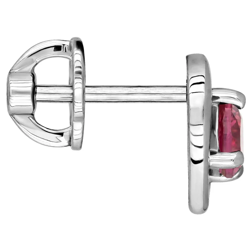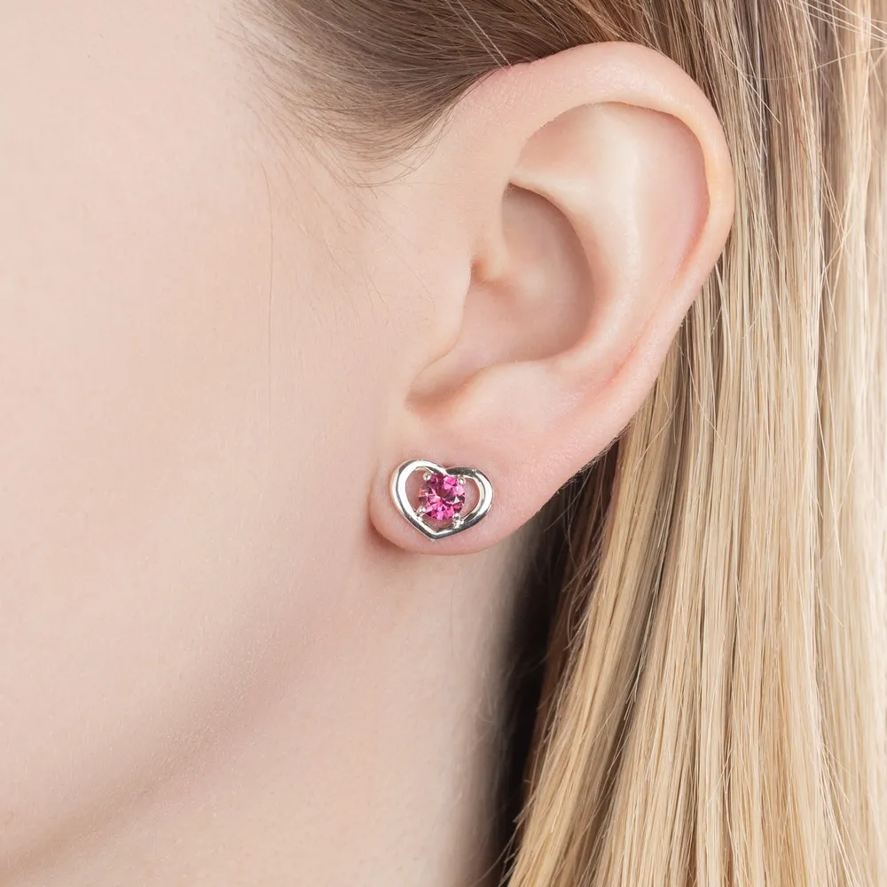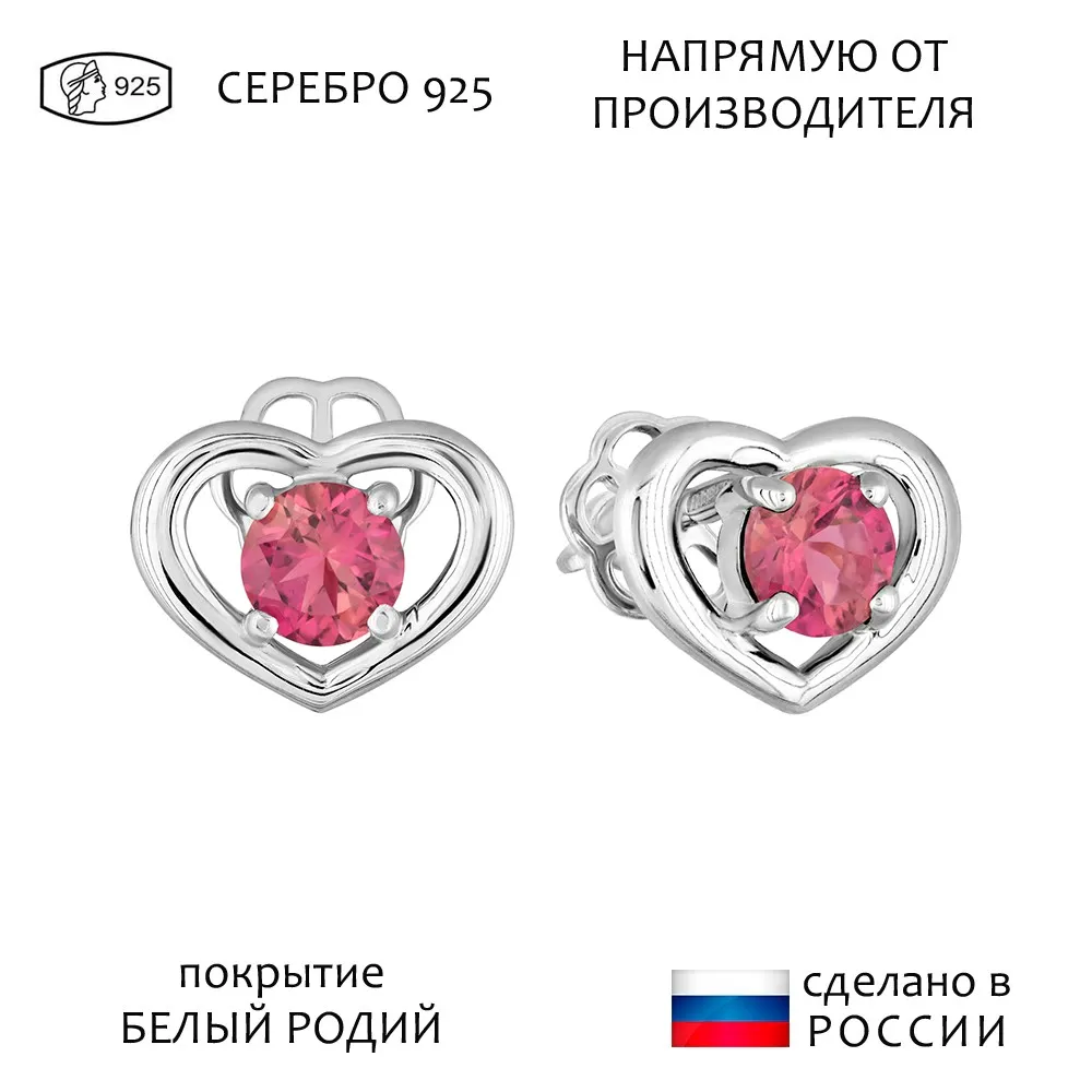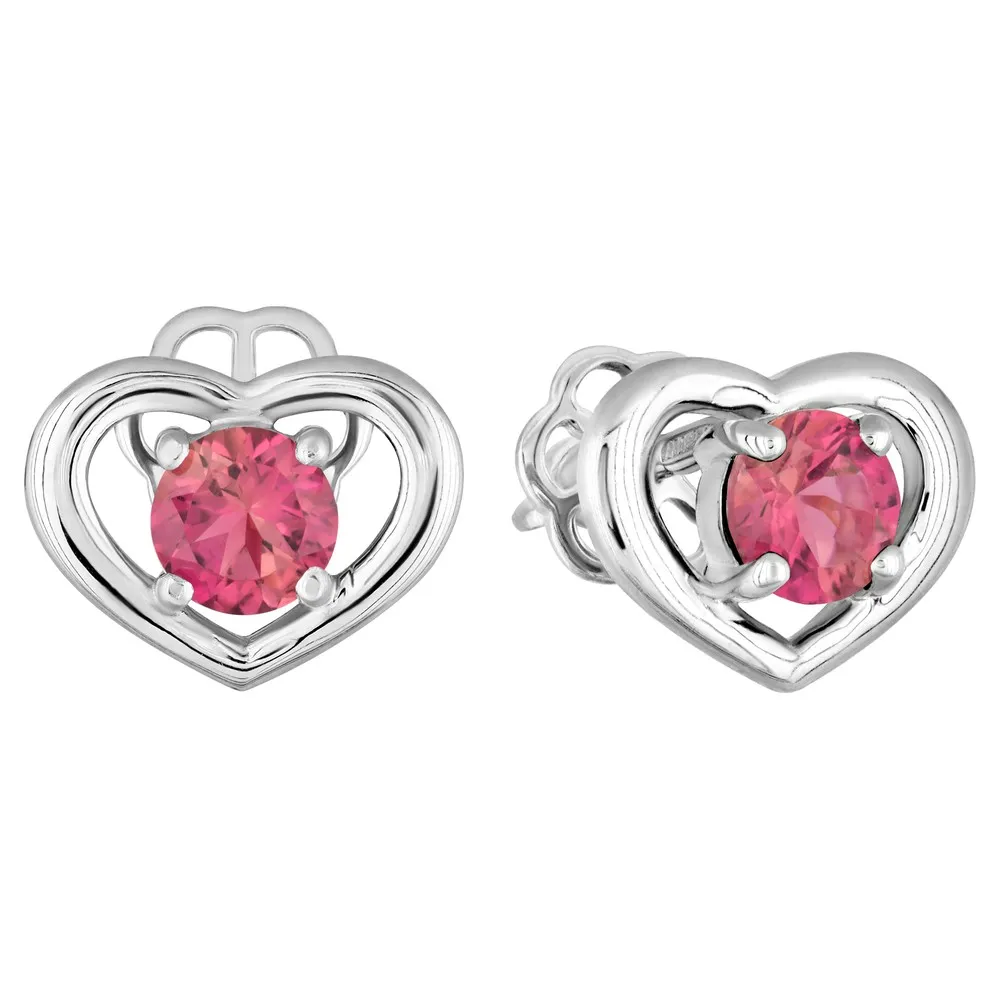 Серебряные серьги гвоздики (пусеты) с натуральным турмалином (2 класс) - Сердце / покрытие Белый Родий.