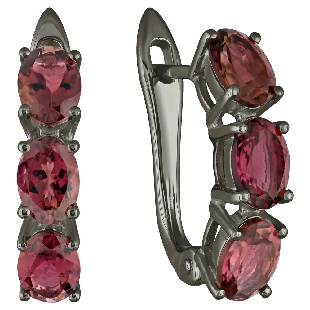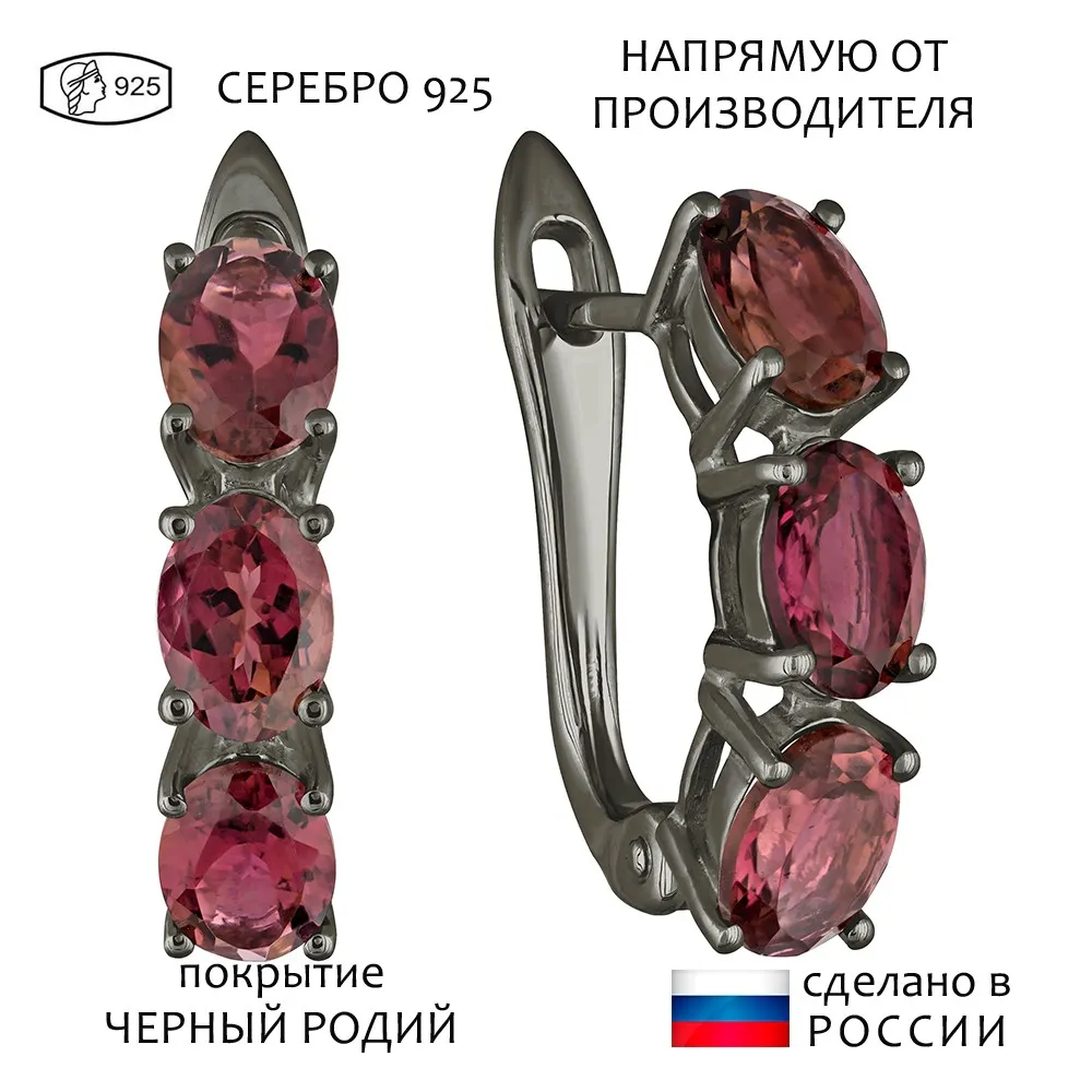 Серебряные серьги с натуральным турмалином (2 класс) - коллекция Муза / Черный Родий.