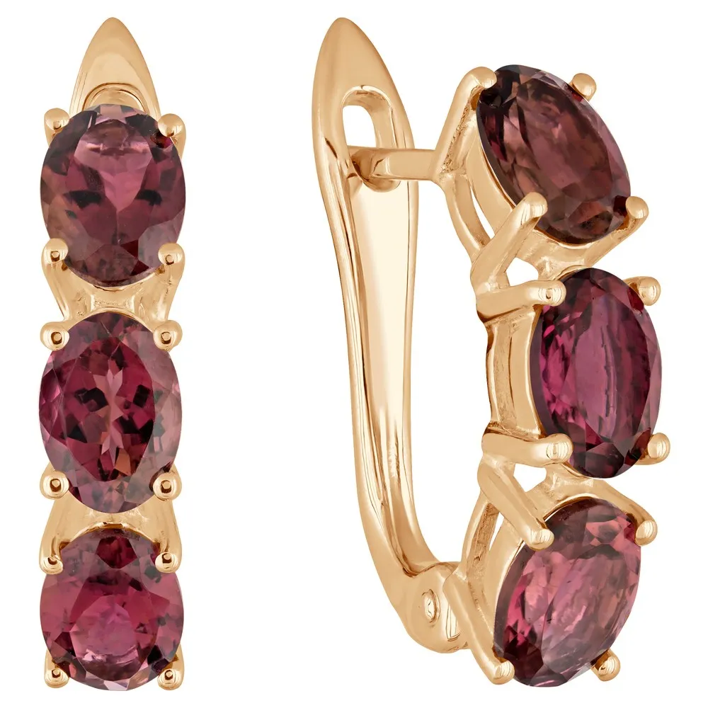 Серебряные серьги с натуральным турмалином (2 класс) - коллекция Муза / Розовое Золото.